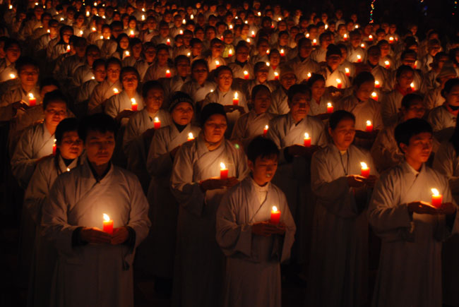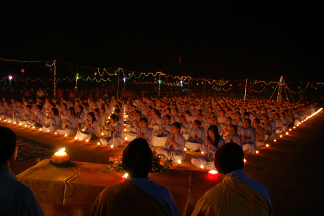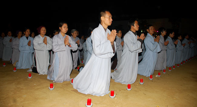 Chùa Hòa Phúc tổ chức lễ quy y và lễ hoa đăng vía Phật A Di Đà
