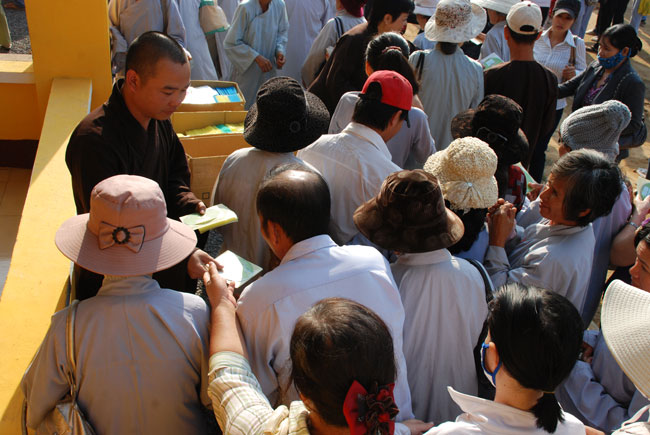 Gần 700 phần quà cúng dường chư Tăng Ni gồm “DVD Dư Âm, Phật Giáo Kỷ Niệm 1000 Năm Thăng Long – Hà Nội, VCD Dân Hòa Nước Mạnh, Phật Pháp Nhiệm Mầu Kỳ 26, Vài Nhận Xét Về Phật Giáo” và hơn 14.000 đĩa VCD “Dân Hòa Nước Mạnh”, “Dư Âm” cho quý Phật tử về dự lễ.