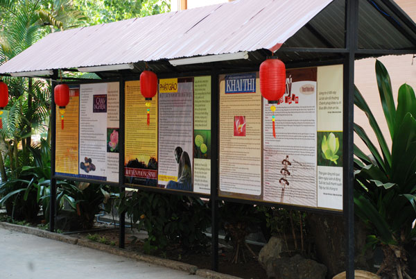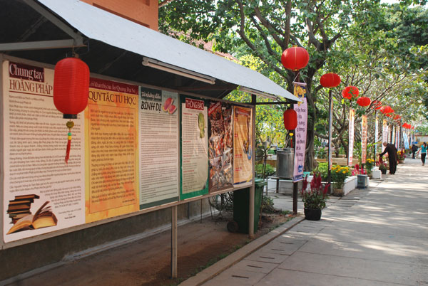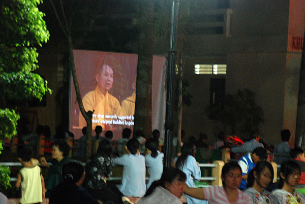 Chùa cũng đã bố trí các màn ảnh rộng để chiếu những video Phật sự và lễ hội của chùa trong năm qua.