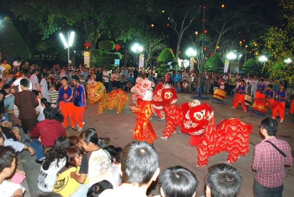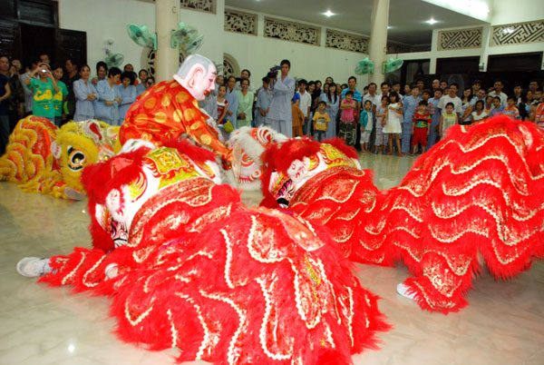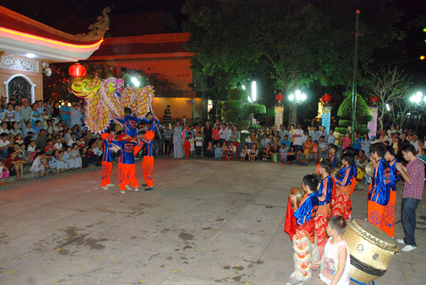 Các đoàn múa Lân, múa Rồng cũng lần lượt tình nguyện về chùa góp vui qua sự biểu diễn hết mình và thật ấn tượng.