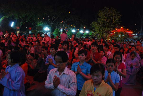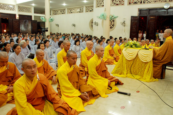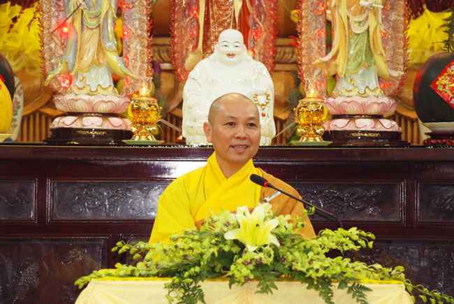 Khi khoảnh khắc giao thừa chỉ còn trong tích tắc cũng chính là lúc ba hồi chuông trống Bát-nhã vang lên hùng hồn cung nghinh chư tôn đức quang lâm chánh điện. Thượng tọa Thích Chân Tính cùng chư tôn đức đã niêm hương bạch Phật trong sự trang nghiêm và ấm áp trước thềm năm mới. Sau đó là khóa lễ bái sám của chư tăng và toàn thể Phật tử, nhằm gội rửa những lo âu và phiền muộn của năm cũ, nguyện cầu năm mới đạt được nhiều niềm vui và hạnh phúc. Để khai mạch cho niềm hỷ lạc, TT. Thích Chân Tính đã có buổi pháp thoại ngắn, trao truyền những lời pháp nhũ cầu cho thế giới hòa bình, đạo pháp xương minh, tăng già hòa hợp, bá tánh hạnh phúc.