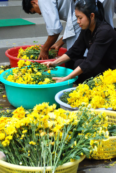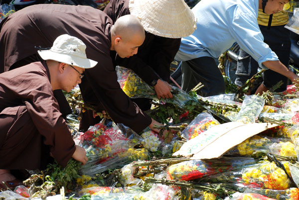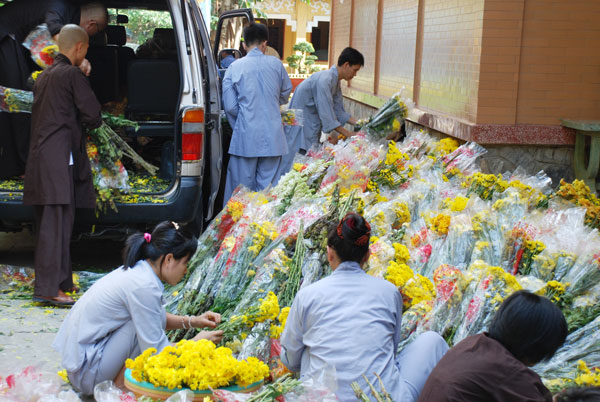 Để hạn chế việc bẻ cây hái lộc, chùa cũng đã chuẩn bị rất nhiều hoa để quý Phật tử lấy lộc đầu năm, quanh các khu vực ngoài chánh điện.