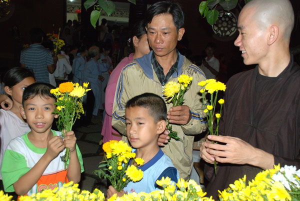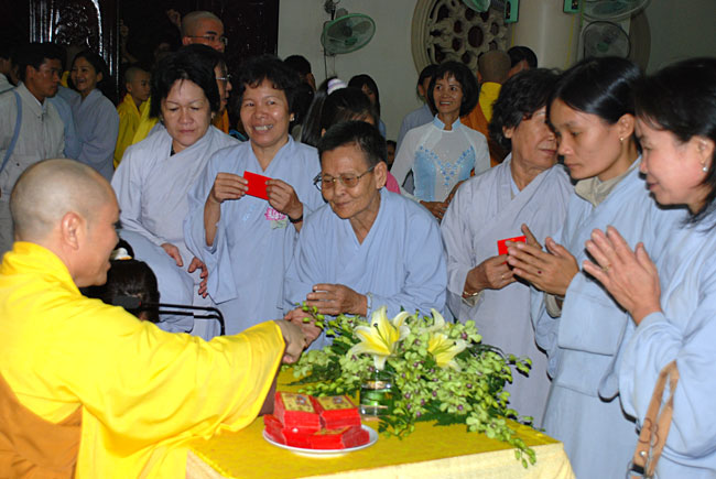 Các du khách thập phương và Phật tử đều nhận được những bao lì xì mừng tuổi của Thượng tọa trụ trì sau buổi lễ.
