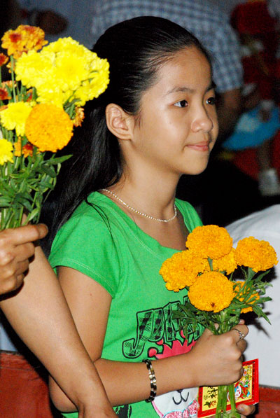 Khói trầm lan tỏa, chuông chùa điểm nhẹ ngân vang, dòng người tấp nập dâng hoa lễ Phật đã làm cho ai nấy cũng thấy mình thật trẻ trung hân hoan.