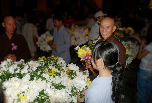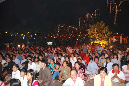Quang cảnh chùa Hoằng Pháp trong những giây phút cuối của năm cũ rất nhộn nhịp, đông vui của trẻ thơ, thanh niên, người cao tuổi, chư tăng ni,… khoảng hơn 20 ngàn người đã hội tụ về nơi ngôi già lam Hoằng Pháp này.