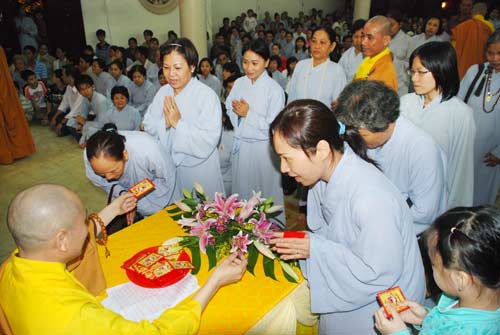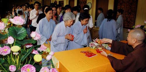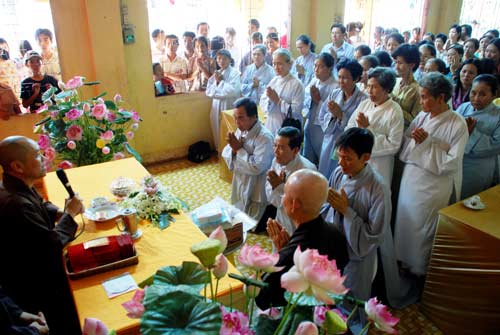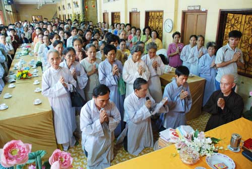 Sáng ngày mồng một Tết, tại Tổ Đường chùa Hoằng Pháp các Phật tử khắp nơi đã về chùa Chúc tết chư tăng trong niềm hỷ lạc.