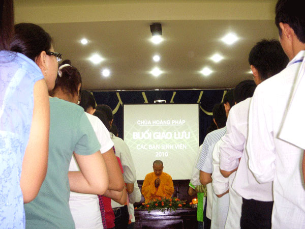 Chủ nhật (04/04/2010), hơn 200 bạn sinh viên thuộc các trường Đại học Công nghiệp 4, Đại học Luật, Đại học Sư Phạm, Đại học Hùng Vương, Đại học Kinh Tế, Đại học Văn Lang và Đại học Ngân Hàng trực thuộc khu vực TP. HCM tập trung về chùa Hoằng Pháp tham dự buổi họp mặt.