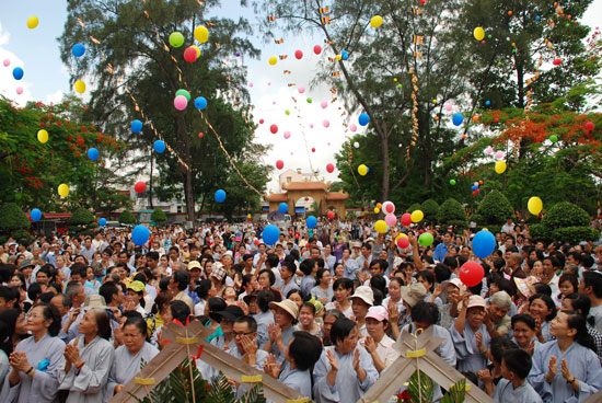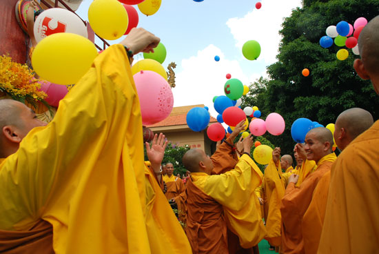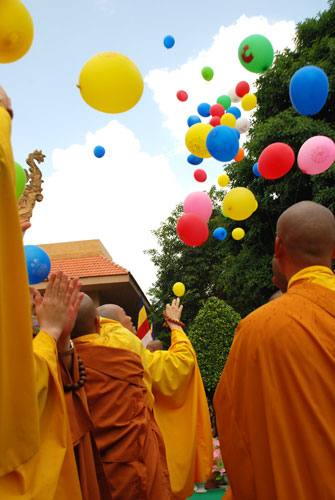 Sau lễ niêm hương, TT. Thích Chân Tính cùng chư tăng đã thực hiện nghi thức thả bong bóng nguyện cầu hòa bình thế giới và an lạc cho chúng sanh.