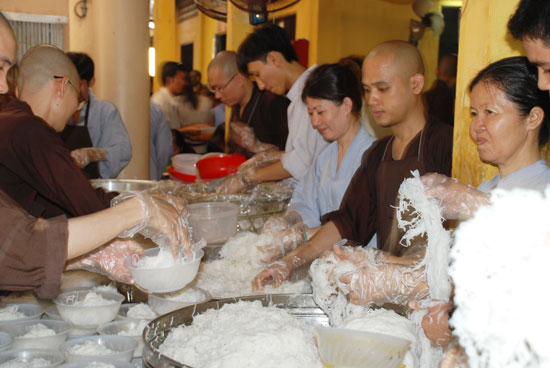 Buổi lễ đã khép lại trong niềm tịnh lạc của tất cả mỗi người. Phật tử về dự lễ đều được trao tặng Pháp Bảo và dùng cơm thân mật tại Bổn tự.