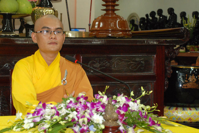 Trước giờ sám hối, thường có thời pháp do quý thầy bổn tự đảm nhiệm. Dưới sự sắp xếp của quý thầy, thời pháp ở lần sám hối này do thầy Đạo Quang phụ trách. Trong ý nghĩa sơ khởi về kinh Pháp Hoa – bộ kinh quan trọng bậc nhất của hệ thống kinh điển Đại thừa – thầy đã nhấn mạnh nội dung của kinh ngang qua bốn phạm trù chính yếu: khai, thị, ngộ, nhập mà Phật đã nêu nhằm giúp chúng sinh thể nhận tri kiến Phật, tức khả năng giác ngộ rốt ráo của mỗi loài. Bằng những ví dụ thiết thực, gần gũi, thầy đã diễn thuyết bài pháp một cách trôi chảy và mạch lạc, giúp thính chúng từng bước tiếp cận và thẩm thấu dễ dàng.