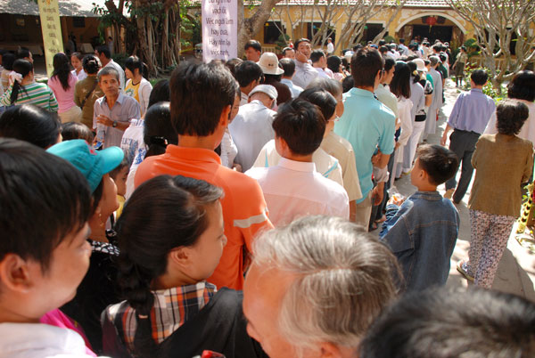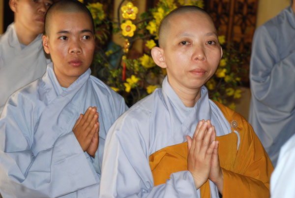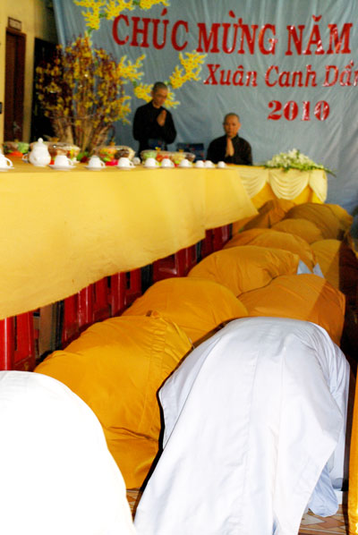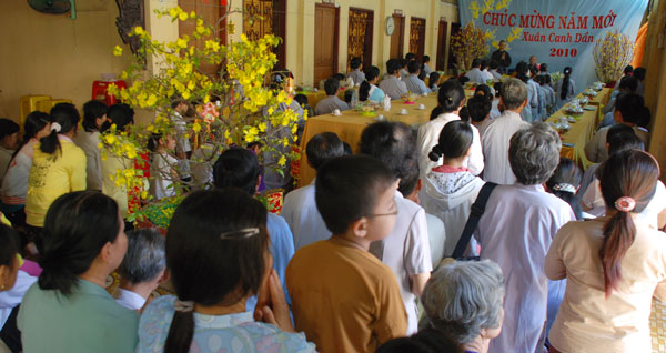 Sáng mồng một Tết, từ rất sớm Phật tử và du khách thập phương đã về chùa lễ Phật và chúc tết chư Tăng.