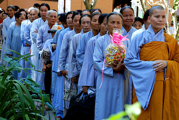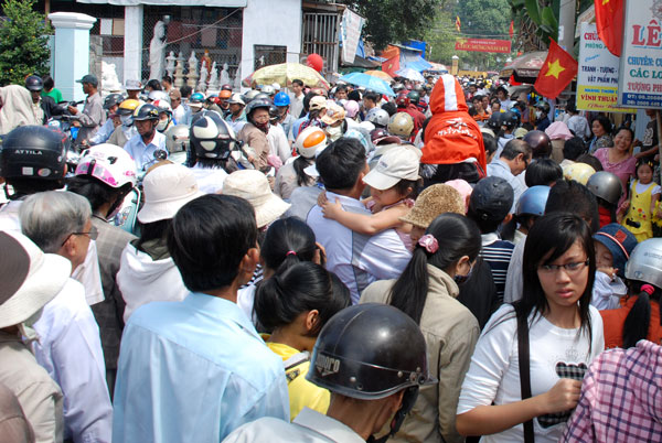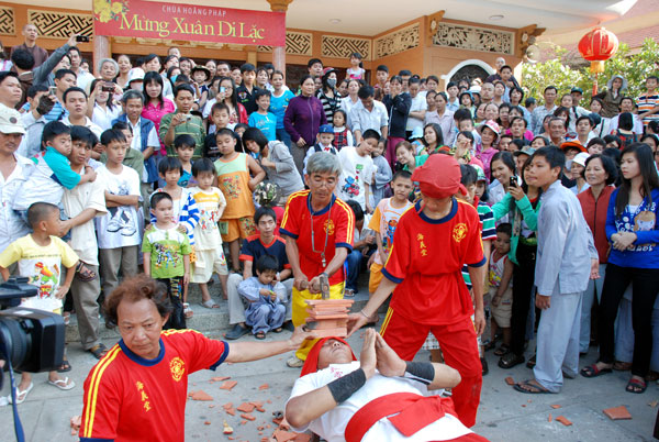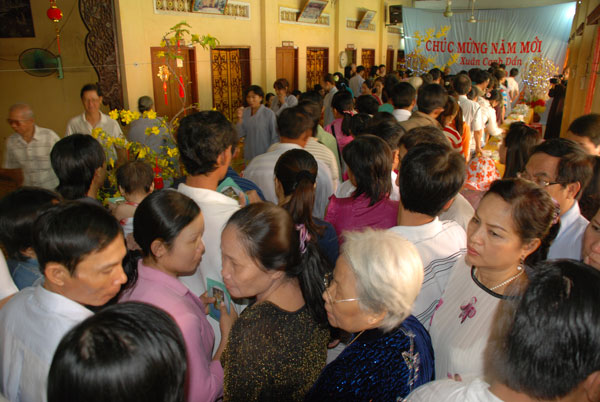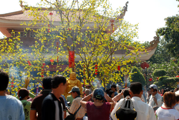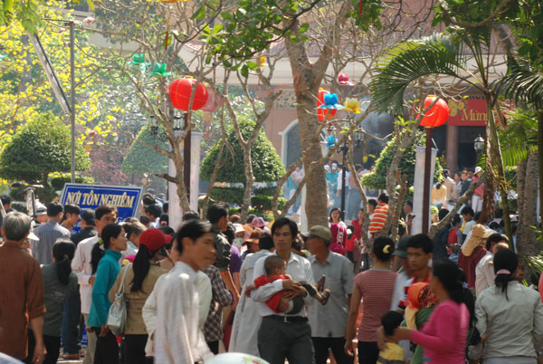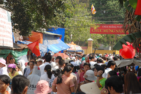 Nếu ngày mồng một tết thường chỉ có phật tử và du khách trong vùng về chùa lễ Phật, thì ngày mồng hai, mồng ba tết Phật tử khắp nơi cũng về chùa. Các đoàn xe từ các tỉnh gần xa đã về đầy các bãi của chùa, dòng người lại tấp nập trong khói hương, tiếng vui cười rộn rã, hân hoan.