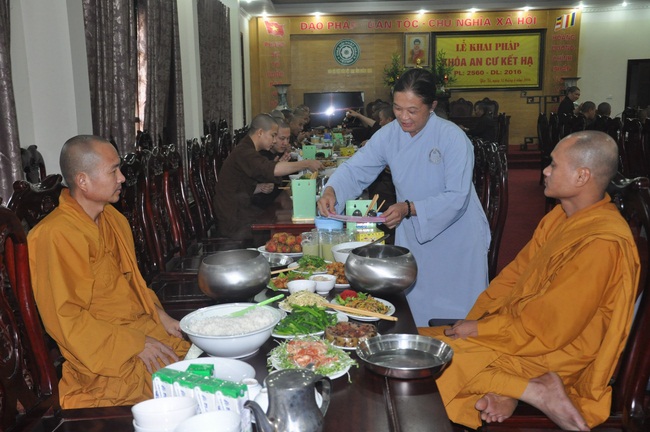 Ngoài cúng dường tịnh tài, tịnh vật. Chùa Tiêu Dao còn phát tâm cúng dường Trai Tăng trong bữa cơm trưa dưới sự chứng minh của chư Tăng là các hành giả An cư tại Trụ sở Ban trị sự GHPGVN tỉnh Quảng Ninh.