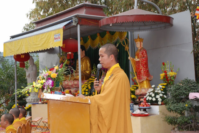 Mở đầu là diễn văn khai mạc của Đại đức trụ trì Thích Tâm Tịnh. Tiếp đó, thay mặt cho Chư tăng chứng minh, Đại đức Thích Tâm Hòa đã tuyên đọc Thư chúc Tết của Đức Pháp chủ GHPG Việt Nam gửi Tăng – Ni, Phật tử Việt Nam trong và ngoài nước đồng thời đã ban đạo từ sách tấn và có bài thơ chúc Tết tới quý Phật tử: