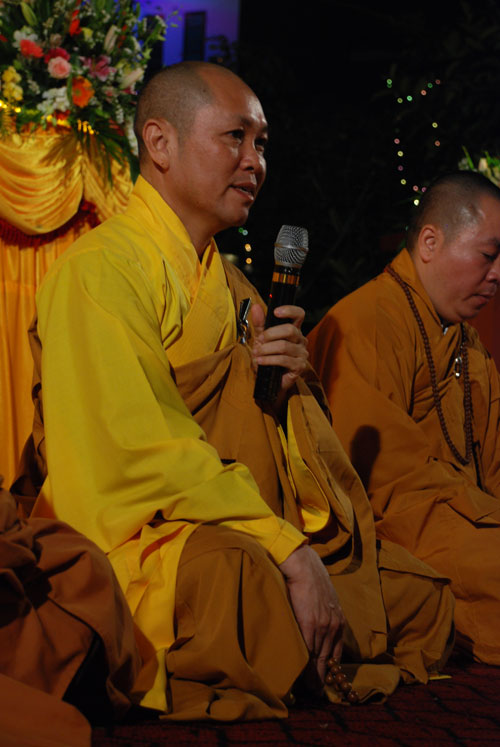 Sau hai giờ đồng hồ ngập tràn trong niềm hỷ lạc, toàn thể hội chúng lại được lắng nghe đạo từ của Thượng tọa Thích Chân Tính; những lời dạy tuy đơn giản, bình dị nhưng lại thâm thúy, chân tình, như ngọn đuốc trí tuệ khai mở chân tâm vạn người con Phật đang hiện diện nơi đây. Lời đạo từ của Thượng tọa đã khép lại một đêm hội trang nghiêm, hoành tráng và thập phần viên mãn.