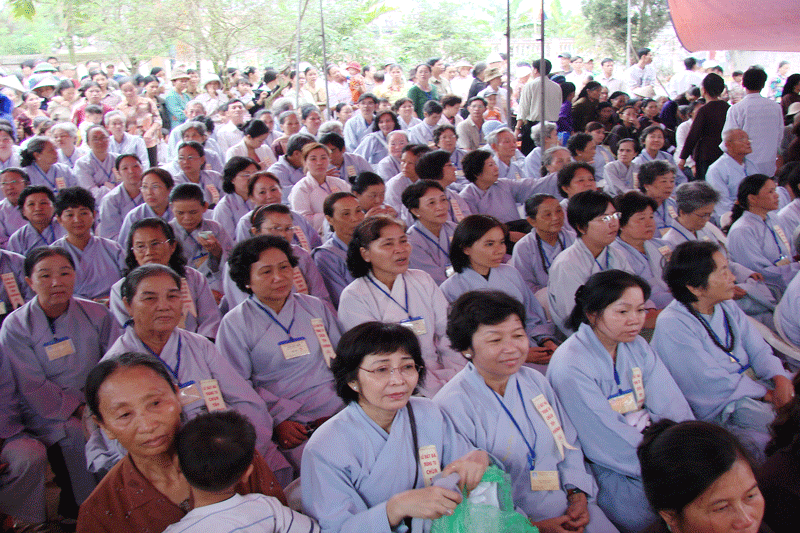 Từ sáng sớm đã có hàng trăm Tăng ni Phật tử thuộc các đạo tràng niệm Phật ở các tỉnh thành miền Bắc đã tề tựu đông đảo.
