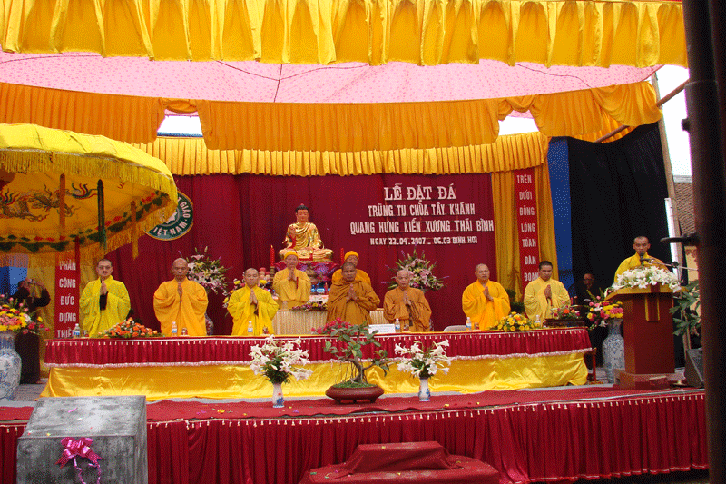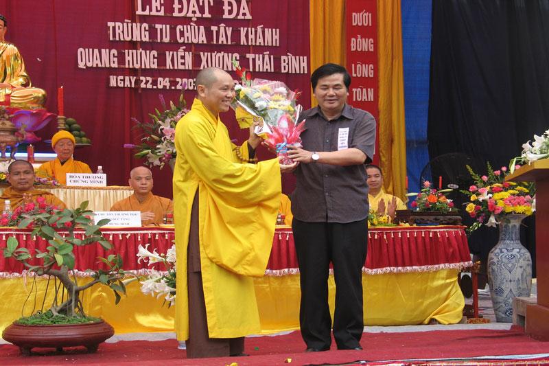 Buổi lễ vinh dự cung đón Hòa thượng Thích Thanh Tứ - đại biểu Quốc hội khóa XI, Phó chủ tịch thường trực HĐTS TW Giáo hội Phật giáo Việt Nam, Viện chủ chùa Quán Sứ (Hà Nội) cùng Chư Tôn Đức Tăng Ni trú xứ các tự viện ở các tỉnh miền Bắc và các cấp chính quyền tỉnh Thái Bình, huyện Kiến Xương về chứng minh tham dự.