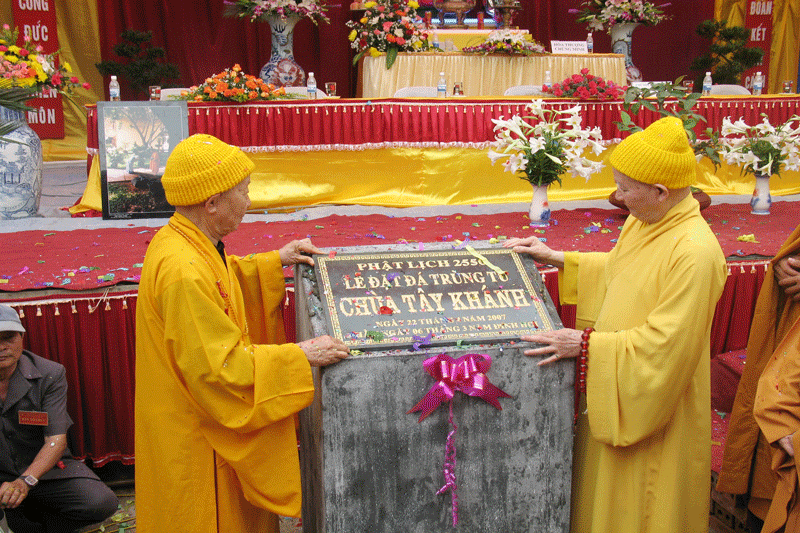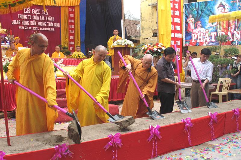 Để tưởng nhớ công ơn cao cả của Sư Tổ Ngộ Chân Tử - người khai sơn chùa Hoằng Pháp (Hóc Môn - Tp. Hồ Chí Minh). Vào ngày 22 - 4 - 2007 (Nhằm ngày 6 - 3 Đinh Hợi), Chư Tăng chùa Hoằng Pháp (Hóc Môn - Tp. HCM) cùng môn đồ Pháp quyến đã tổ chức lễ đặt đá trùng tu chùa Tây Khánh (ngôi chùa Tổ Sư khai sơn)tại xã Quang Hưng - huyện Kiến Xương - tỉnh Thái Bình.