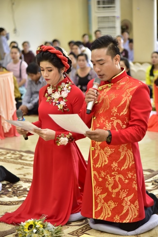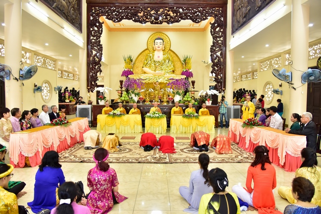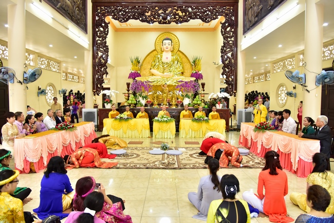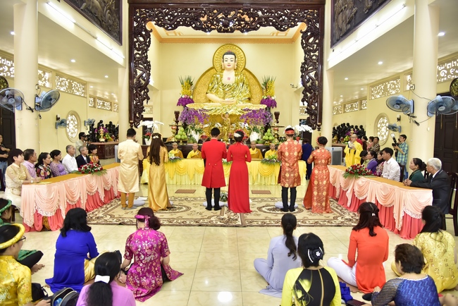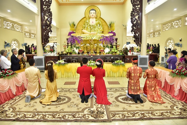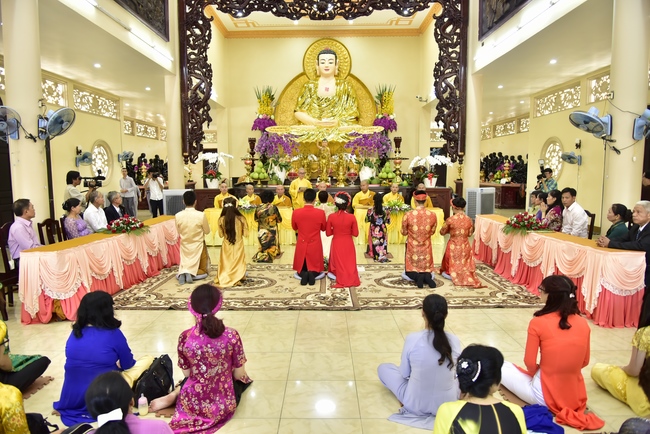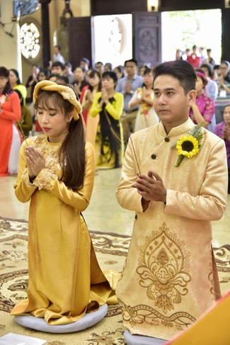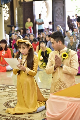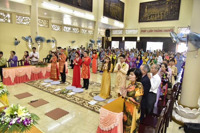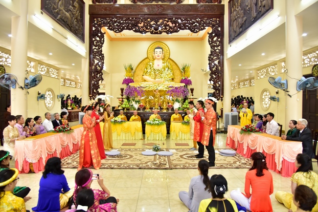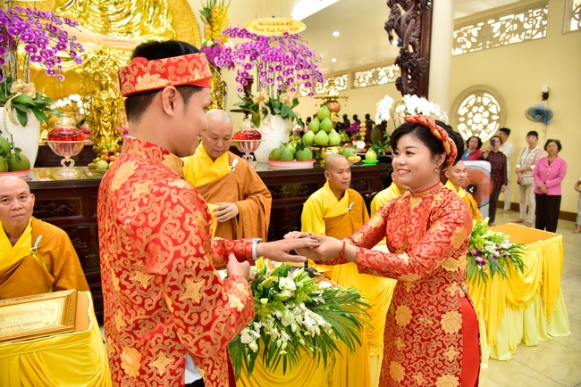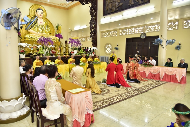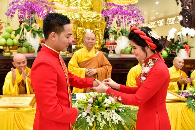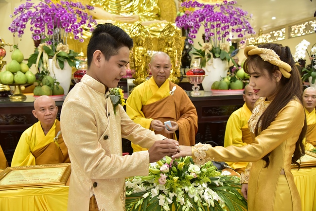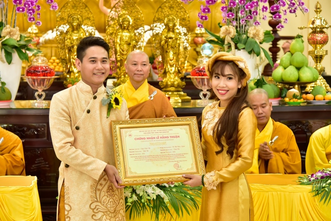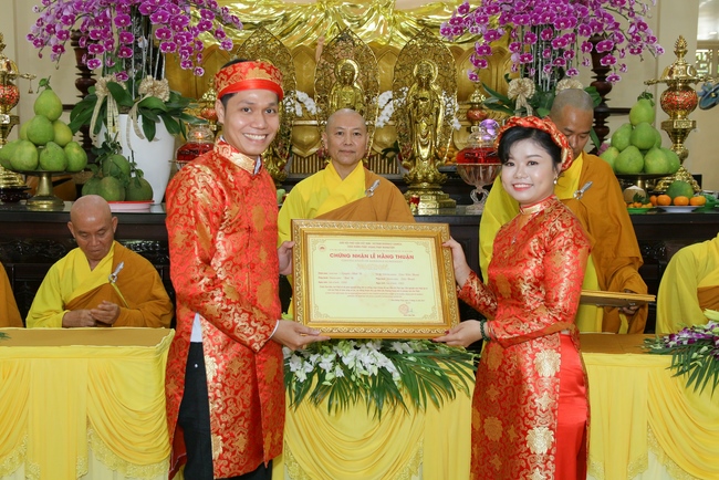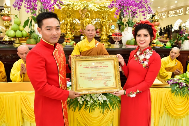 Sau khi cử hành những nghi thức của lễ Hằng Thuận như niêm hương bạch Phật, đại diện hai họ dâng lời tác bạch và trao nhẫn cưới,…Thượng tọa Thích Chân Tính, trụ trì chùa Hoằng Pháp đã thay mặt cho hiện tiền chư tôn đức Tăng chứng minh ban bố những lời huấn từ về đạo vợ chồng cho đôi bạn trẻ.