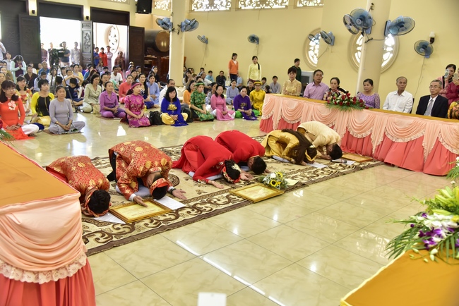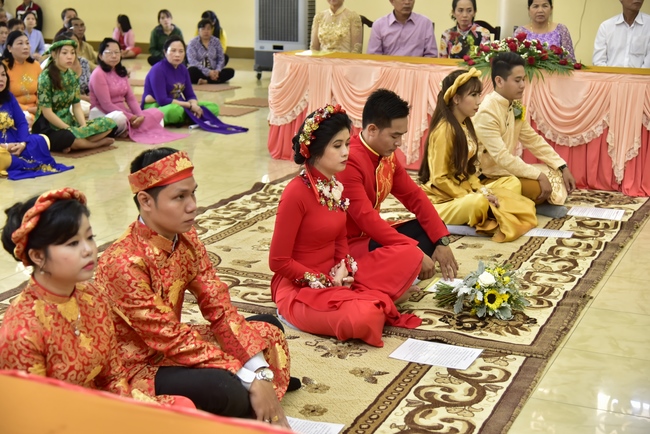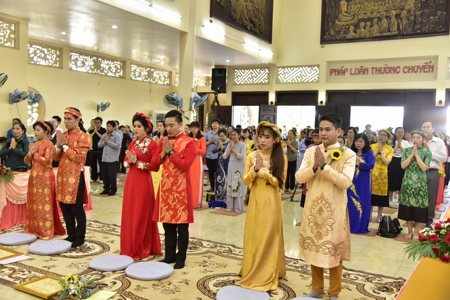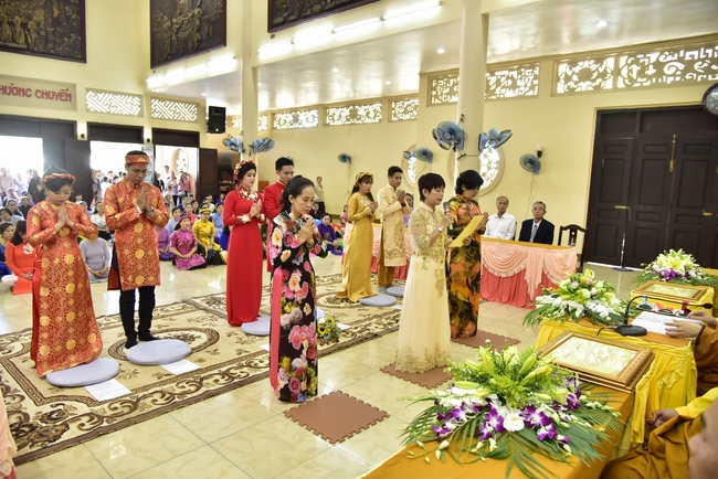 Một gia đình áp dụng tinh thần Lục hòa trong đời sống thì gia đình đó có được hạnh phúc. Vợ chồng biết lắng nghe, biết tôn trọng và chăm sóc cho nhau. Con cái biết vâng lời và hiếu kính cha mẹ, ông bà. Những người lớn trong gia đình biết quan tâm và dạy dỗ con cháu. Một gia đình thực hành Lục hòa và giữ gìn năm giới thì mọi thành viên trong gia đình đó trở thành người tốt. Gia đình là tế bào của xã hội nên gia đình có ấm no, hạnh phúc thì xã hội sẽ được phát triển thịnh vượng. Cuối buổi lễ, Thượng tọa chứng minh đã trao giấy chứng nhận và phần quà lưu niệm cho các đôi tân lang và tân nương.