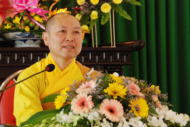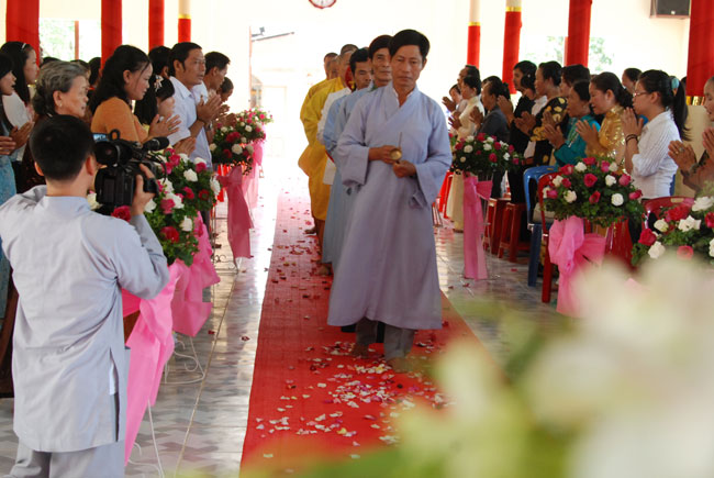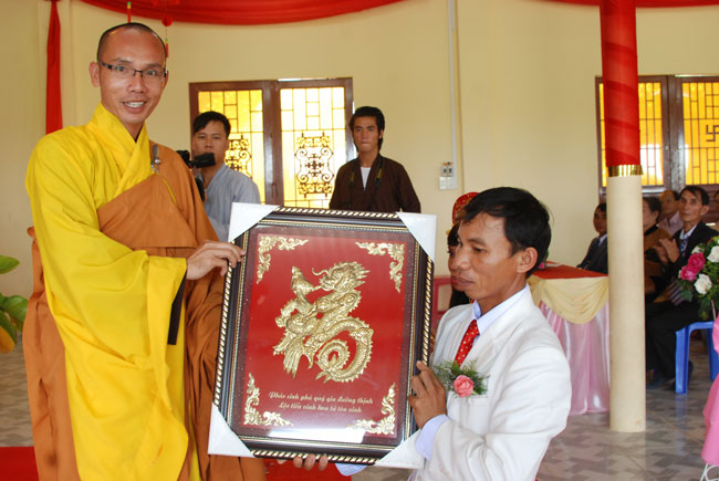 Thay mặt chư tôn đức Tăng chứng minh, Thượng tọa Thích Chân Tính đã có lời huấn từ đến đôi tân lang và tân nương về bổn phận, trách nhiệm của vợ đối với chồng và ngược lại. Thượng tọa cũng chia sẻ thêm về cách xây dựng hạnh phúc trong gia đình dựa trên nền tảng của đạo Phật, cách quan hệ đối xử vối cha mẹ hai bên, thai giáo và nuôi dạy con cái. Đồng thời, Thượng tọa đã nhấn mạnh đối với đôi vợ chồng trẻ phải học Phật pháp để có một đời sống thăng hoa về tâm linh và có được một cuộc sống chân, thiện, mỹ.