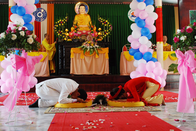 Đã từ lâu người ta thường quan niệm rằng, tổ chức đám cưới chỉ ở nhà hàng sang trọng hay tại tư gia. Song ngày nay nhiều bạn trẻ đã chọn cửa Phật là nơi khởi đầu cho ngày vui hạnh phúc lứa đôi. Bởi tới chùa, hằng thuận không chỉ là nét đẹp văn hóa từ lâu đời, mà còn văn minh phù hợp với lối sống hiện đại ngày nay.Tổ chức lễ Hằng thuận và tiệc chay tại chùa là hình thức nên được khuyến khích đến những người học Phật.