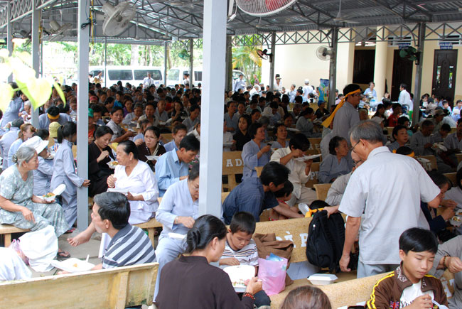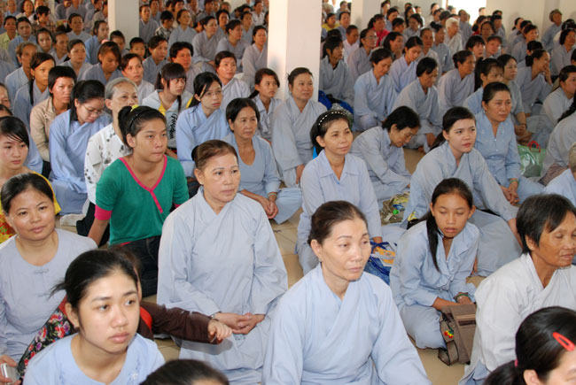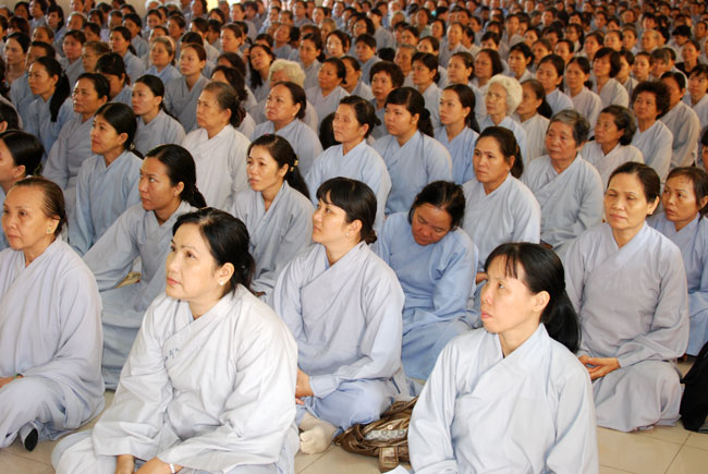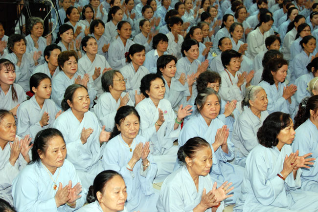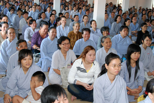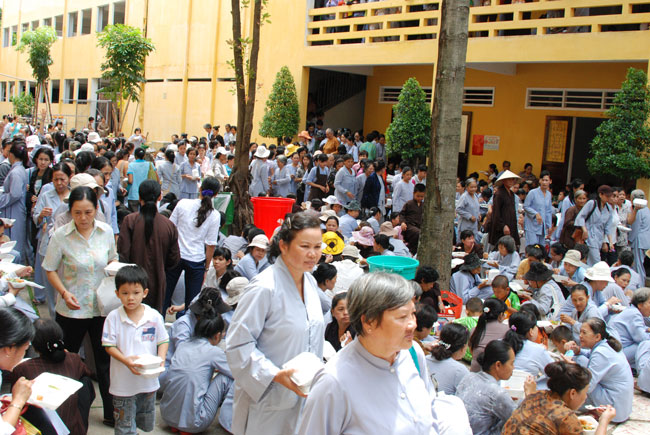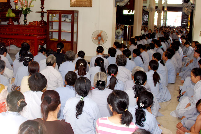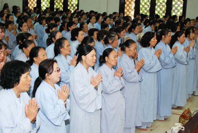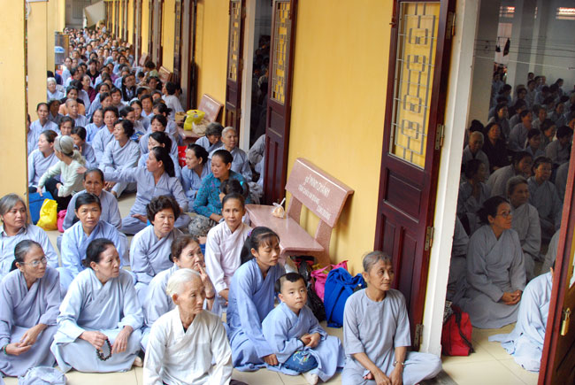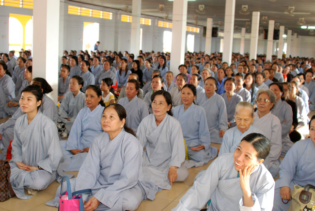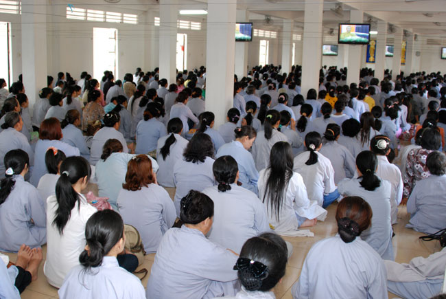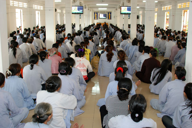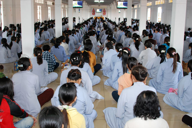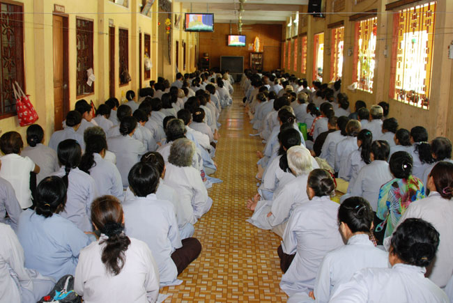 Buổi chiều, sau giờ nghỉ trưa, các Phật tử lại nhanh chóng vân tập về các khu vực giảng đường để tiếp tục giờ công phu niệm Phật.