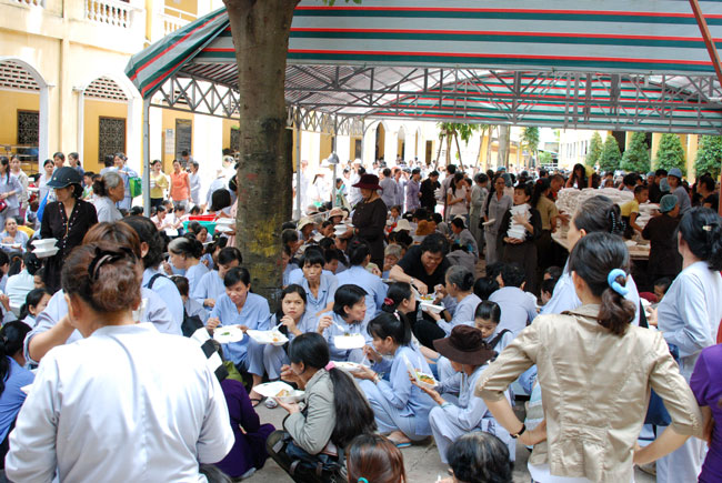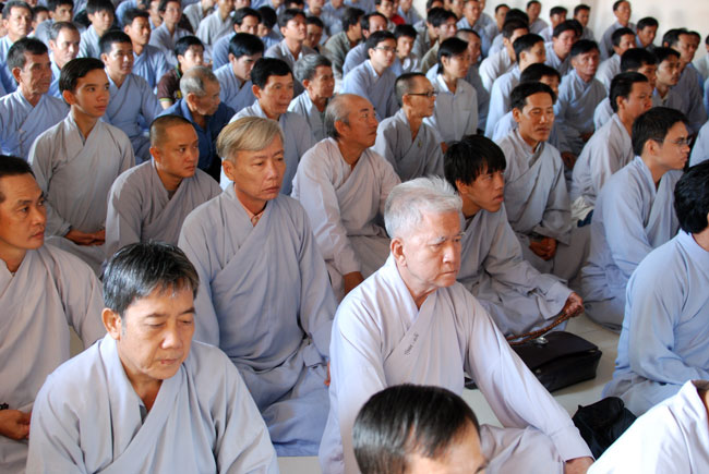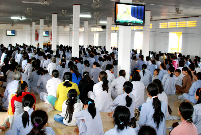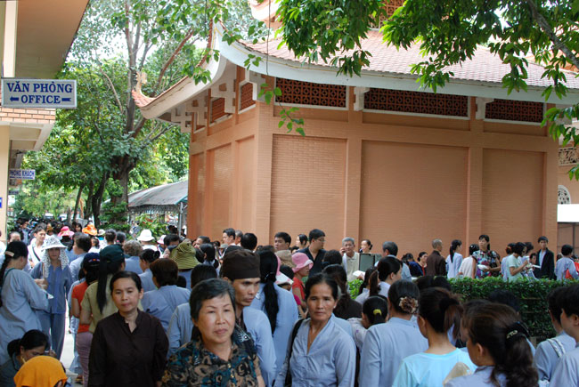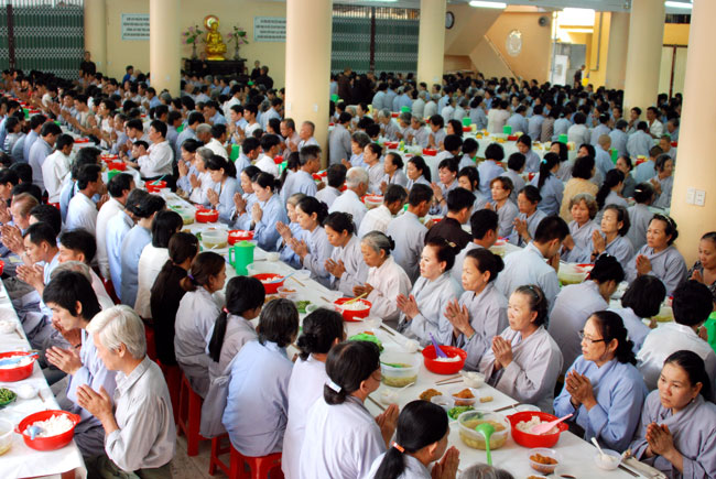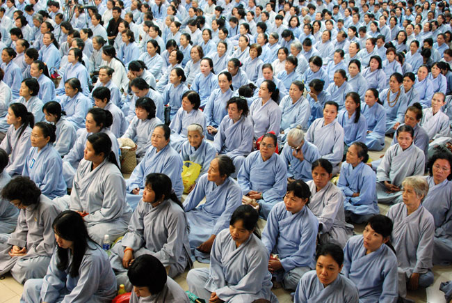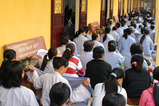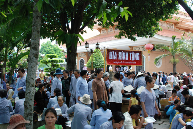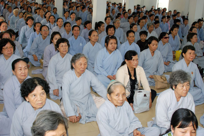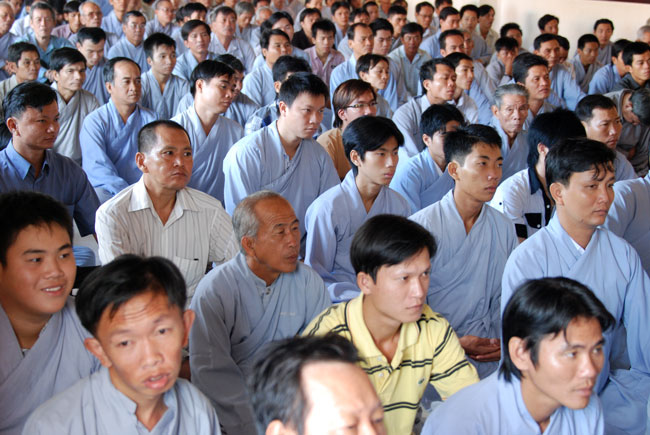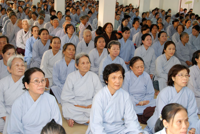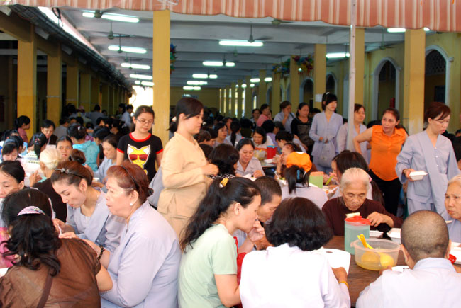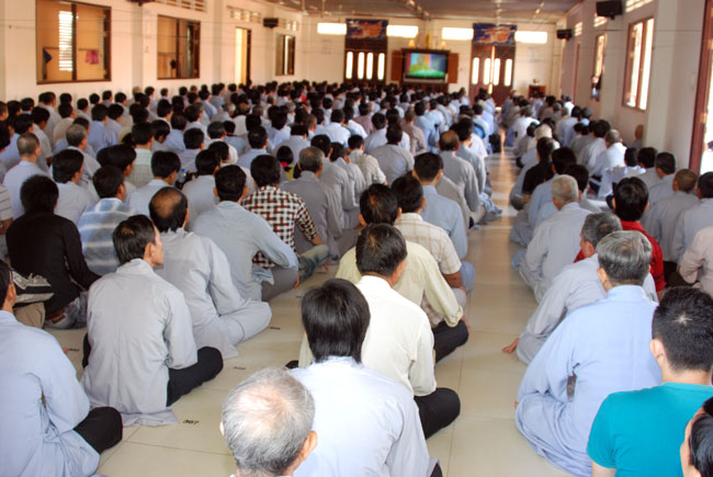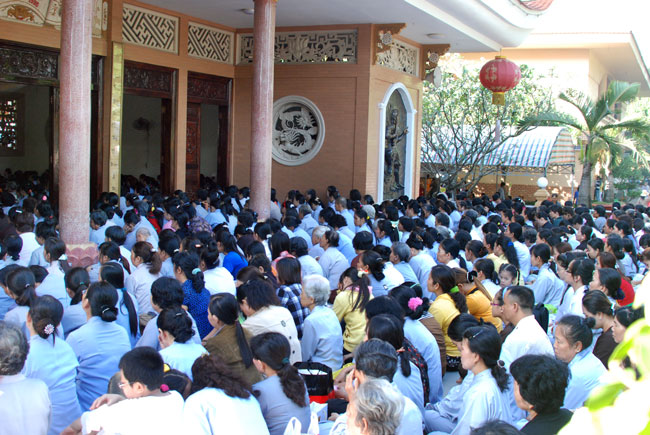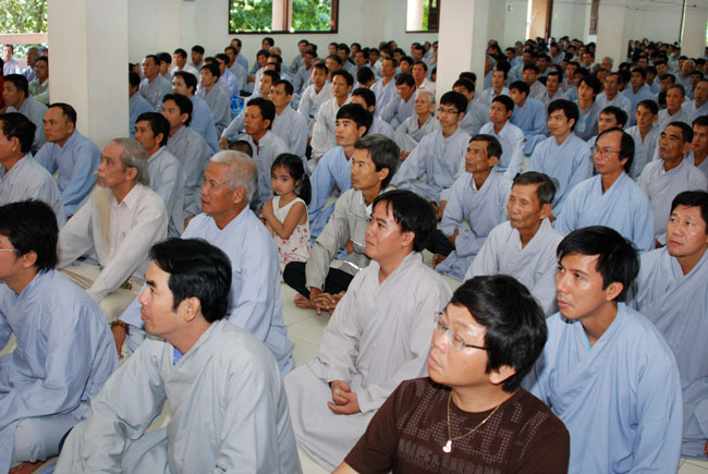 Buổi chiều, sau giờ nghỉ trưa, các Phật tử lại nhanh chóng vân tập về các khu vực giảng đường để tiếp tục giờ công phu niệm Phật.
