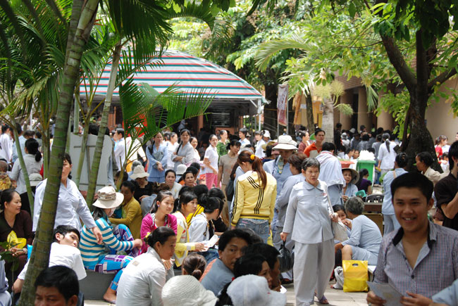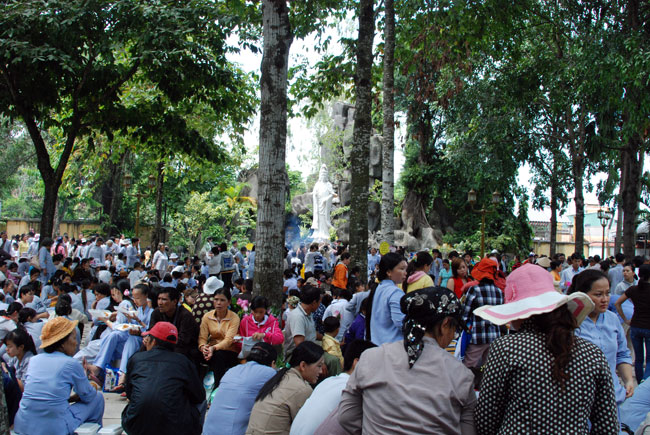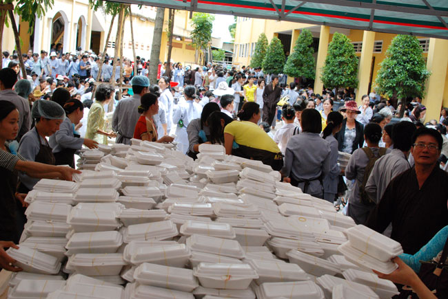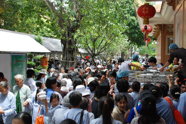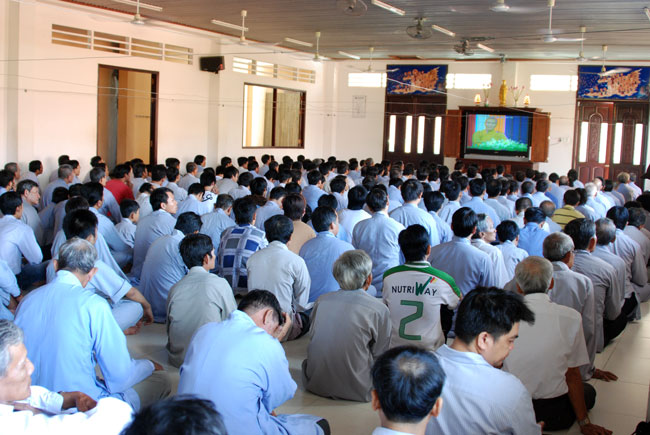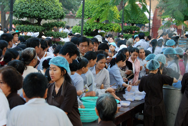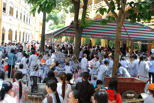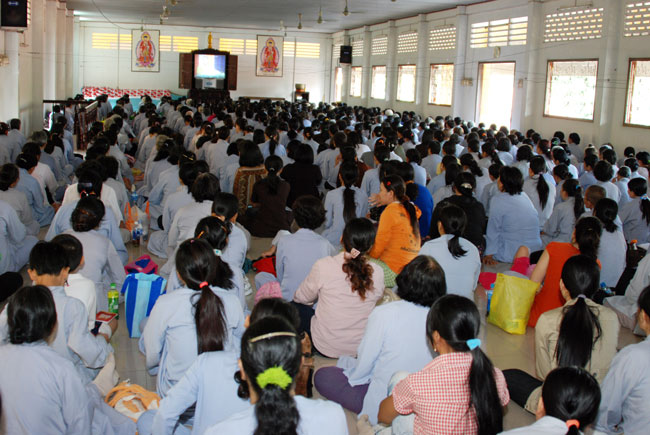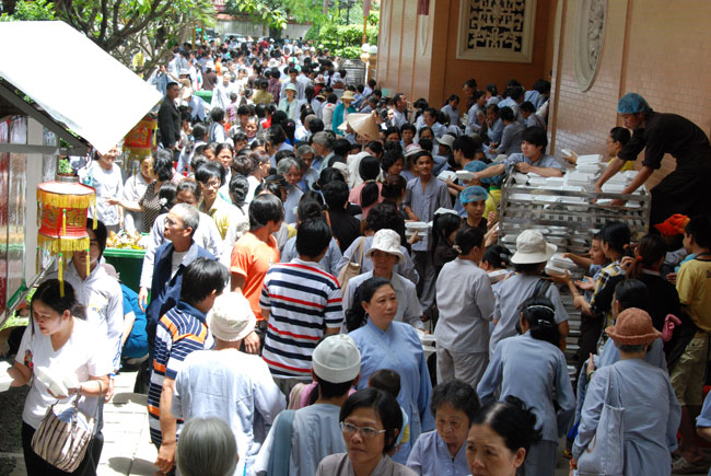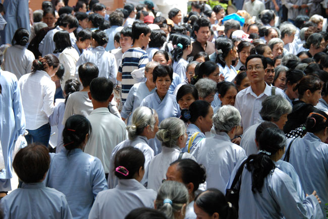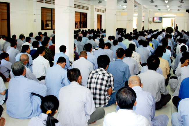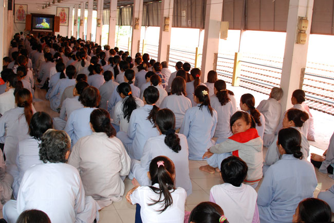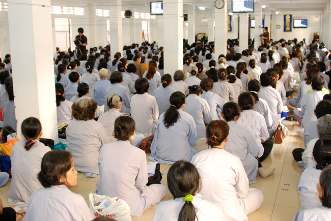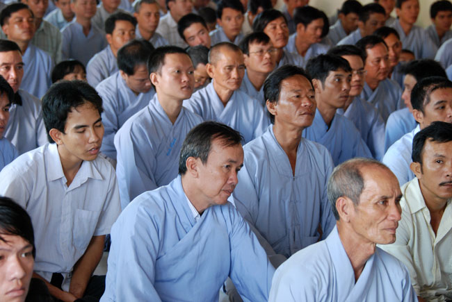 Buổi chiều, sau giờ nghỉ trưa, các Phật tử lại nhanh chóng vân tập về các khu vực giảng đường để tiếp tục giờ công phu niệm Phật.