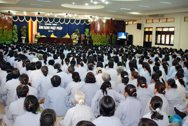 Sau bữa điểm tâm sáng là phần sinh hoạt nội quy cũng như lời khuyến tấn các Phật tử nên có ý thức giữ gìn sự trang nghiêm, thanh tịnh cho ngày tu, nhằm mang lại lợi ích cho mình và cho mọi người. Cũng trong ngày tu này, chùa Hoằng Pháp đã thực hiện chương trình Ánh sáng Phật pháp kỳ 31 với những câu hỏi về các phong tục và tín ngưỡng dân gian đối với người đã chết. Đây cũng là thắc mắc của nhiều Phật tử trong quá trình tu học và thực hành Phật pháp trong đời sống hằng ngày. Và trong chương trình kỳ này, dưới góc nhìn và quan điểm Phật giáo, Thượng tọa Thích Phước Nghiêm đã giải đáp, tháo gỡ những vướng mắc ấy, nhằm giúp các Phật tử có cái nhìn thấu suốt hơn đối với vấn đề được nêu ra.