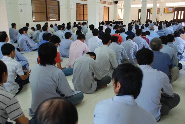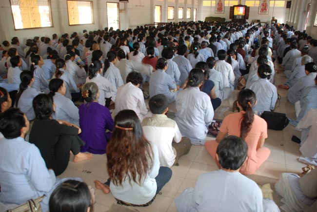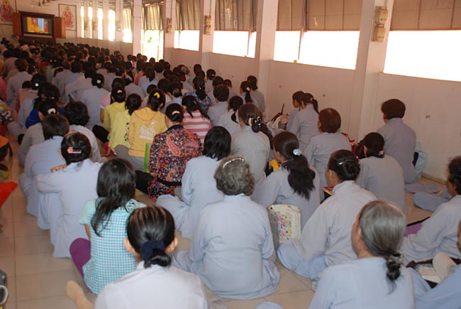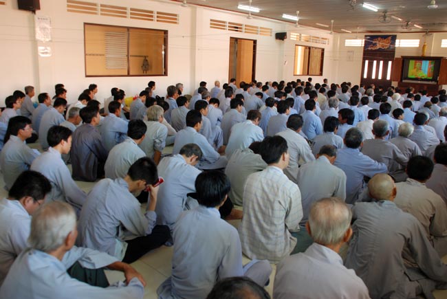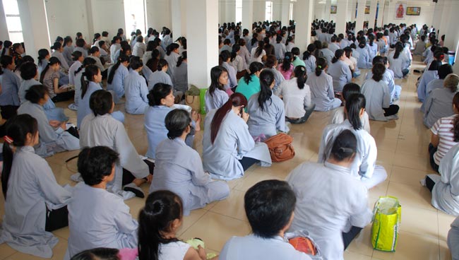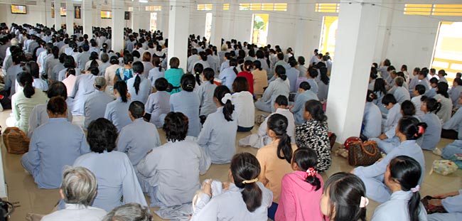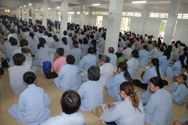 Phật tử tham dự chương trình ở bên trong và ngoài chánh điện, khu nhà tổ, khu A, phòng số 9