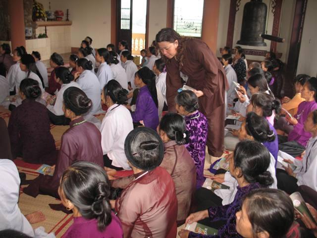 Chiều cùng ngày phái đoàn đã đến chùa Vĩnh Thọ thuộc xã Trung Châu, huyện Đan Phượng, tỉnh Hà Tây, do sư thầy Thích Viên Niệm trụ trì. Tại đây, sư thầy đã cung thỉnh Thượng tọa và chư Tăng truyền thọ Tam Quy Ngũ Giới cho gần 200 thiện nam tín nữ. Đồng thời khuyên mọi người khi đã phát nguyện Quy y rồi thì điều đầu tiên là phải giữ giới, sống và làm theo lời Phật dạy có được như vậy mới là người Phật tử chân chính. Trước khi ra về, Thượng tọa đã tặng những phần quà Pháp bảo đến cho toàn thể đạo tràng.