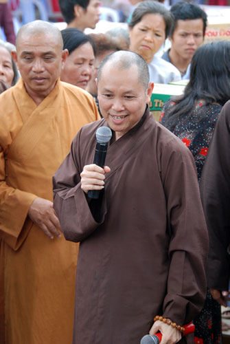 12 giờ trưa, Thượng tọa Thích Chân Tính cùng đoàn đã đến chùa Phước Thiên, với sự cung đón nồng nhiệt của các em nhỏ và Phật tử nơi đây đã tạo nên một không khí thân thiện thấm đượm tình dân tộc. Thoáng nhìn các em cứ tưởng là người Cambodia, nhưng khi Thượng tọa Thích Chân Tính vừa từ trên xe bước xuống, các em chắp tay trang nghiêm trước ngực, cùng cất vang danh hiệu “Nam Mô A Di Đà Phật” làm cho đoàn ai nấy cũng ngạc nhiên và rất vui. Mặc dù ở nơi đất khách quê người mà các em vẫn giữ được tiếng mẹ đẻ và biết niệm danh hiệu Phật A Di Đà.