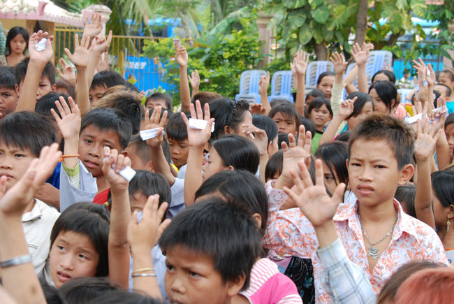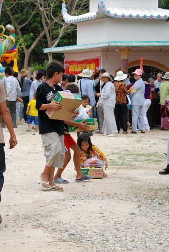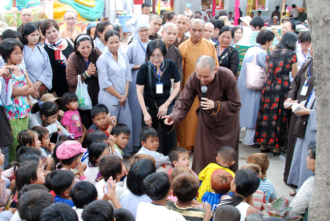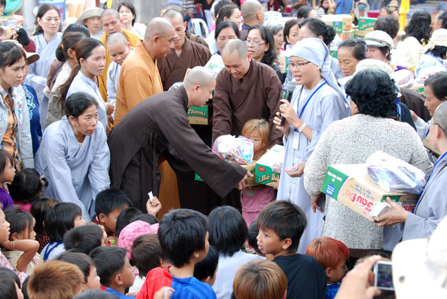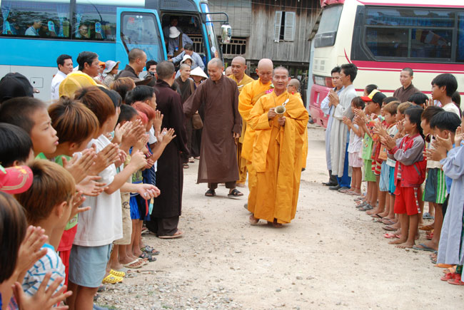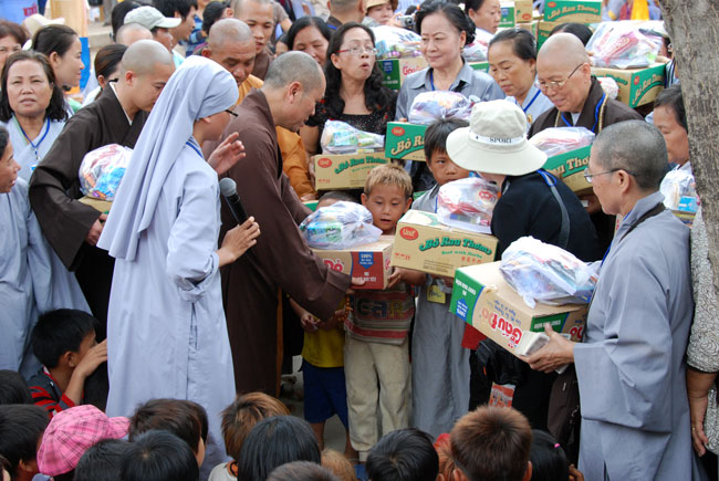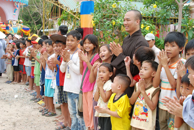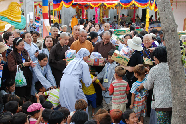 Được biết, những người Việt sống tại nơi đây đều có đời sống vật chất và tinh thần còn thiếu thốn và khó khăn, phần lớn là đi làm thuê và buôn bán vặt tại các tụ điểm, bên cạnh đó các em nhỏ cũng phải tự bươn trải kiếm sống bằng đủ mọi nghề. Nhân chuyến đi Phật sự tại vương quốc Cambodia, Thượng tọa Thích Chân Tính cùng đoàn từ thiện của nhạc sĩ Vũ Ngọc Toản, cùng Tăng ni và Phật tử Việt Nam đã tổ chức phát 160 phần quà (mỗi phần trị giá 150 ngàn đồng) cho các em thiếu nhi nơi đây. Chiều tối cùng ngày, đoàn đi thăm và tặng tịnh tài cho một số gia đình nghèo tại khu vực người Việt sinh sống chung quanh khu vực chùa. Vào lúc 19h, đêm ca nhạc nhằm góp thêm niềm vui cho đồng bào nơi đây do nhạc sĩ Vũ Ngọc Toản tổ chức được mọi người cổ vũ và tán thán.