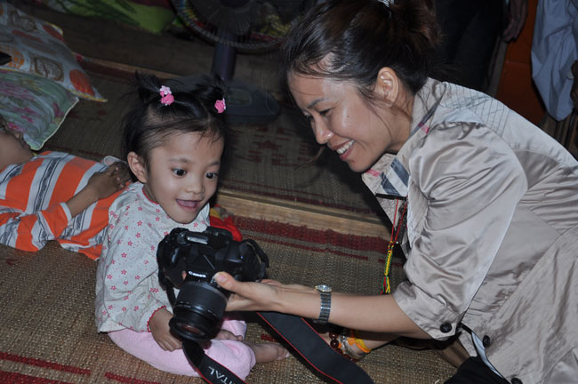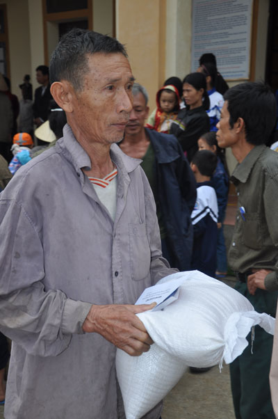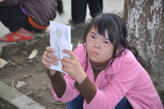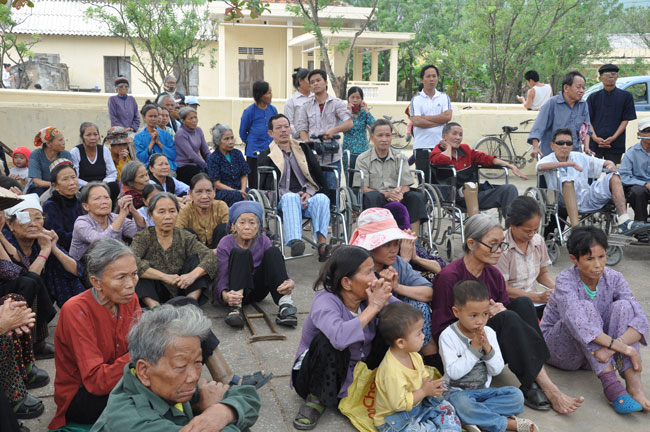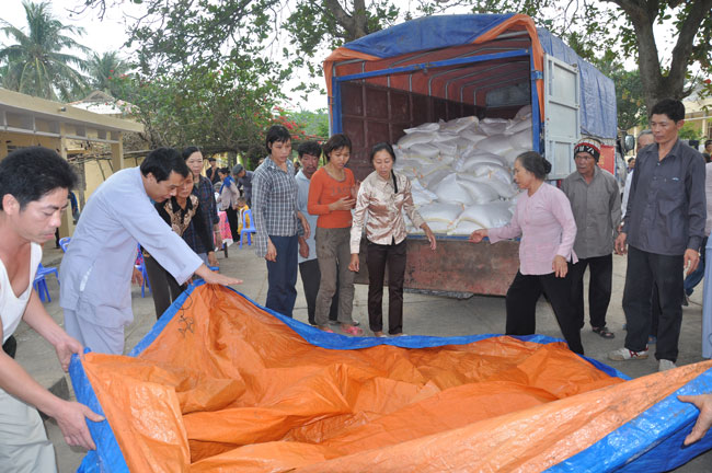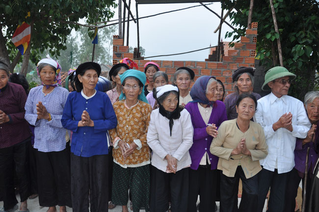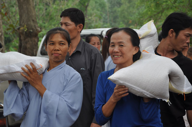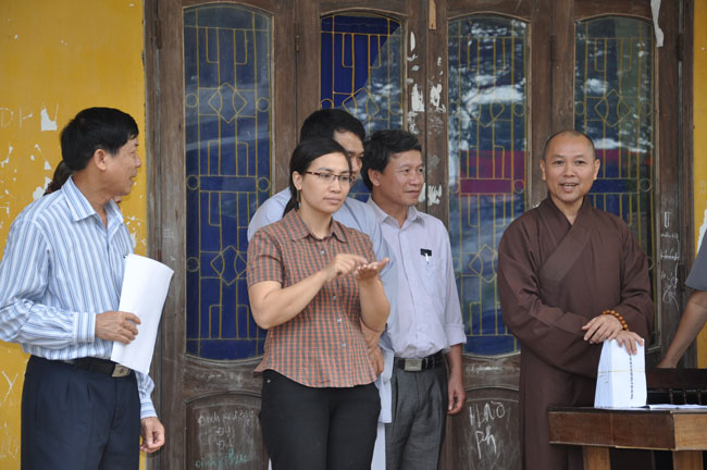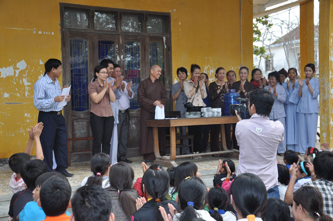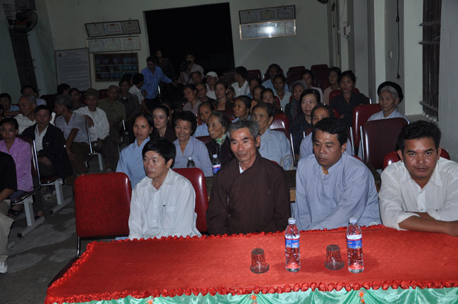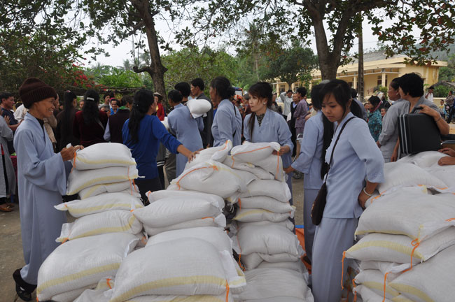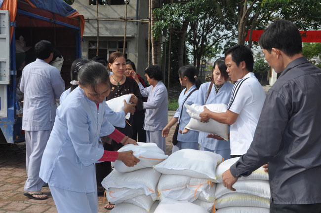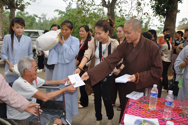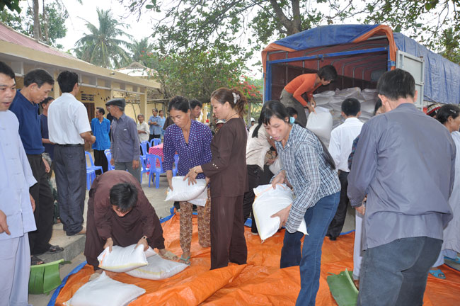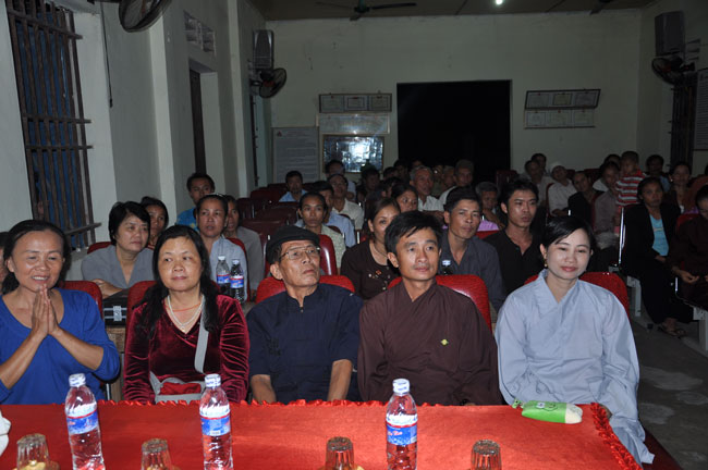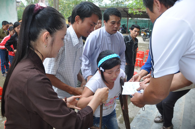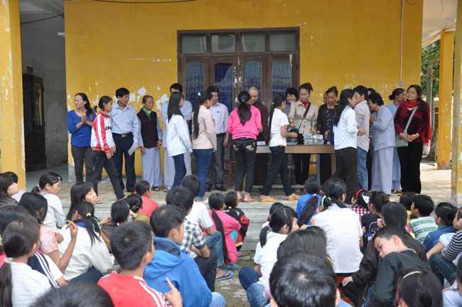 Không quản mệt mỏi, mặc dù trời đã tối, nhưng đoàn vẫn tiếp tục đi tới xã Quỳnh Phương, huyện Quỳnh Lưu. Tại đây, cùng với Phật tử Hoàng Thị Thoa, đoàn đã gửi đến 25 phần quà cho 25 hộ đặc biệt khó khăn. Mỗi phần quà trị giá 2 triệu đồng.