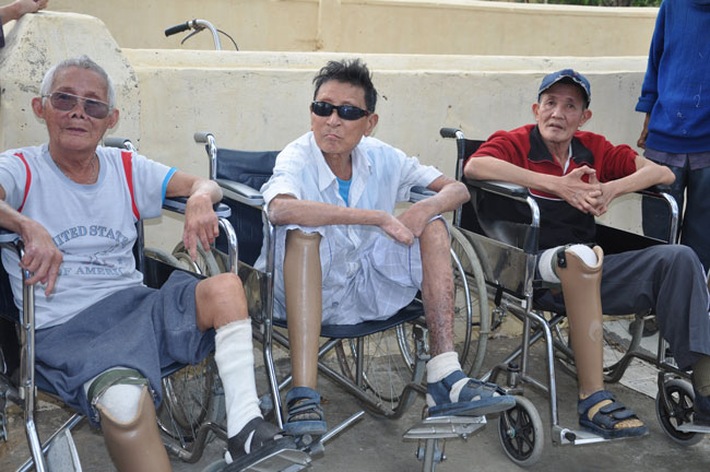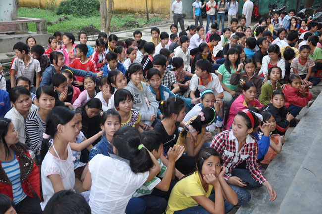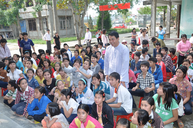 Điểm tiếp theo là Trung Tâm Dạy Nghề Người Tàn Tật trú tại: Ngã Ba Quán Bàu. Tp Vinh. Nghệ An. Tại đây, đoàn đã gặp gỡ ông Trần Duy Mão – giám đốc trung tâm, và ông cho biết: cảm nhận được những khó khăn mà người tàn tật gặp phải khi hòa nhập vào xã hội, khi trong tay không nghề nghiệp, lại có khiếm khuyết về thể trạng, nên trung tâm đã mạnh dạn mở các lớp dạy nghề phù hợp với sức khỏe của các em như: nghề may, nghề thêu, nghề mộc... Hiện trung tâm đang xây dựng cơ sở hạ tầng về chỗ ăn, chỗ nghỉ và chỗ học tập cho các em có điều kiện hơn để tập trung vào học nghề. Hiểu và chia sẻ với những khó khăn mà trung tâm đang gặp phải, đoàn đã tặng 224 phần quà cho các em, mỗi phần quà trị giá 300.000 ngàn đồng.