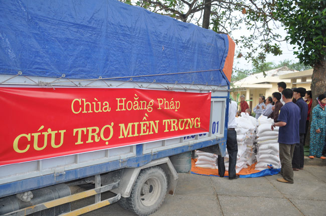 Những ngày đầu tháng mười năm 2010, đồng bào các tỉnh miền Trung trong đó trực tiếp là đồng bào Nghệ An – Hà Tĩnh – Quảng Bình đã liên tiếp phải hứng chịu những thiệt hại nặng nề về người và của do lũ lụt gây ra. Hiểu và thương cảm cho những người dân khốn khó miền Trung, nên ngay từ sáng sớm ngày 23/11/2010 nhằm ngày (18/10 năm Canh Dần) TT. Thích Chân Tính cùng chư tăng chùa Hoằng Pháp và đoàn Phật tử Vinh tiếp tục có chuyến từ thiện tại tỉnh Nghệ An.