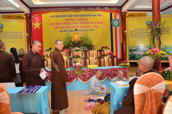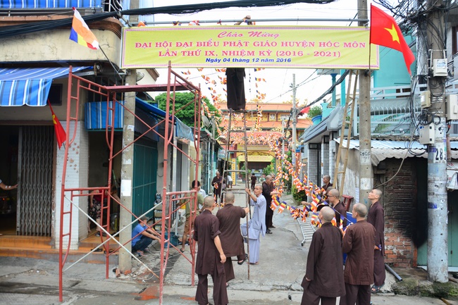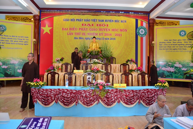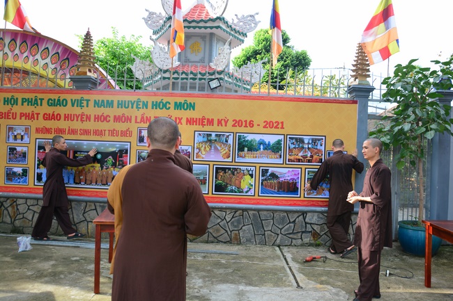 Chư tôn đức Tăng Ni trong BTS GHPGVN huyện Hóc Môn đã cùng Phật tử trang hoàng hội trường, chuẩn bị tốt nhất cho Đại hội thành công tốt đẹp. Các khâu chuẩn bị cho Đại hội như: băng rôn, khẩu hiệu, cờ, v.v.. đang được xúc tiến một cách nhanh chóng để sớm hoàn thành phục vụ cho buổi lễ.
