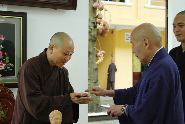 Hoà thượng Yoshimizu Daichi đã phát biểu bày tỏ tình cảm của mình đối với tinh thần hoằng pháp lợi sinh của Thượng toạ Trụ trì và chư Tăng tại bổn tự. Hoà thượng mong muốn sẽ có các hoạt động giao lưu Phật sự nhiều hơn nữa để gắn chặt tình đoàn kết hữu nghị giữa tông phái Tịnh độ Nhật Bản nói chung và chư Tăng Phật tử tại bổn tự nói riêng.