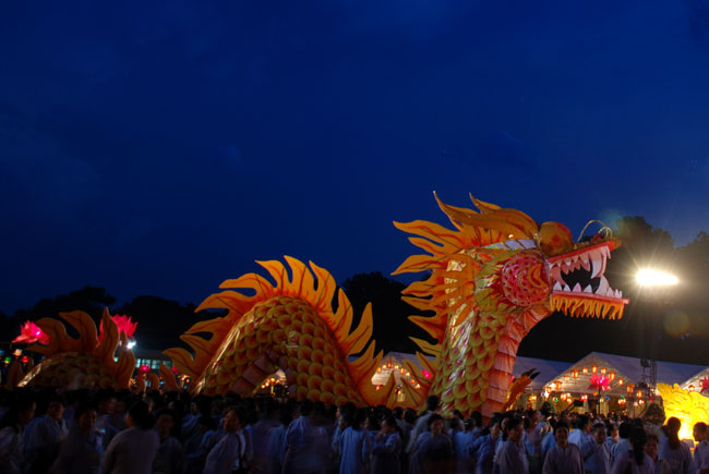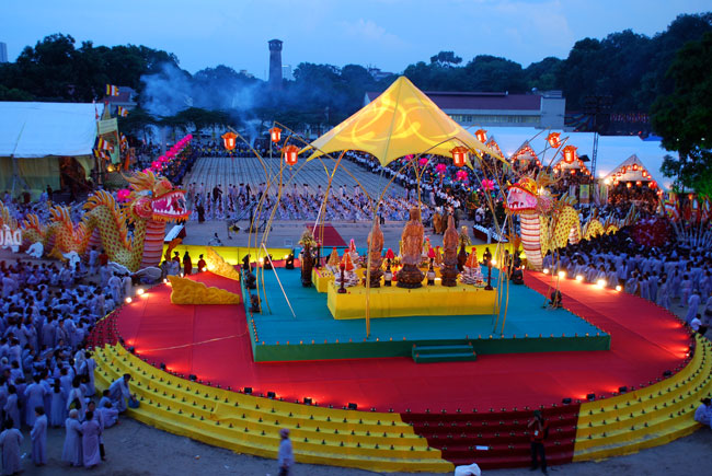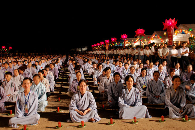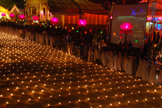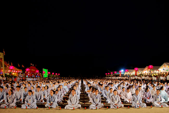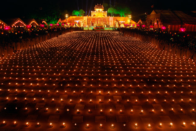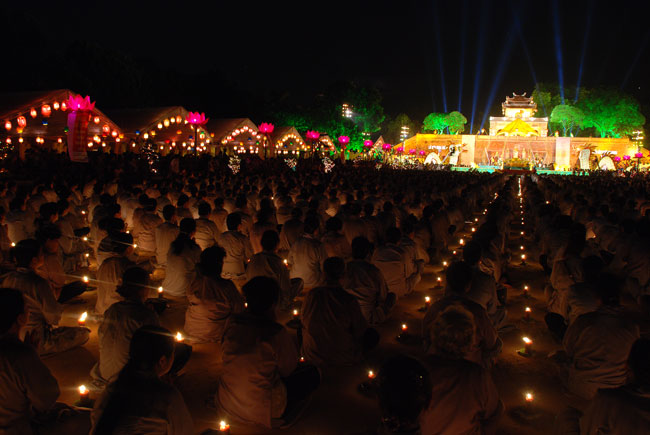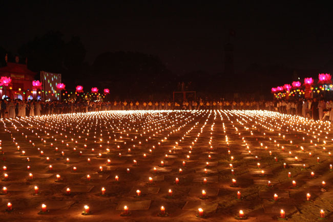 Hơn 6.000 ngọn nến được tỏa sáng trong đêm hội cùng tiếng nhạc niệm Phật hòa lẫn giọng đọc truyền cảm về “ý nghĩa truyền đăng” của ĐĐ. Thích Tâm Hải. Sau đó là nghi thức tụng kinh cầu nguyện thế giới hòa bình, quốc thái dân an.
