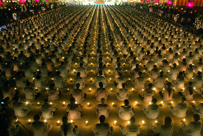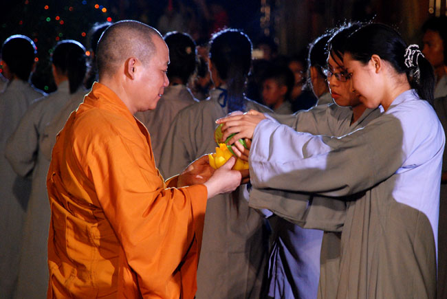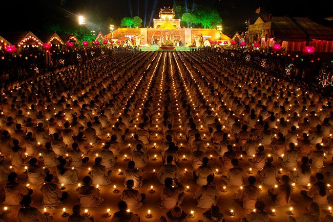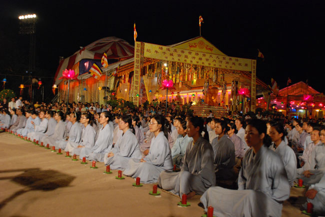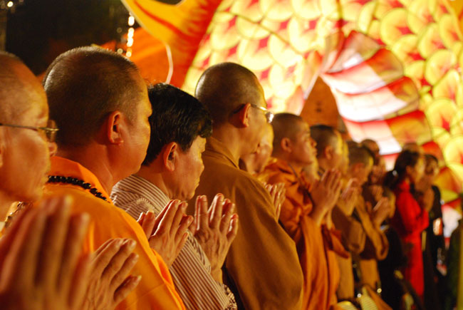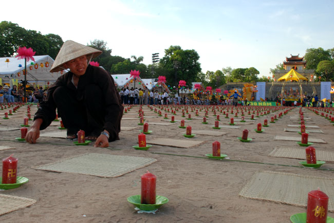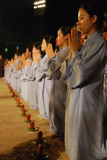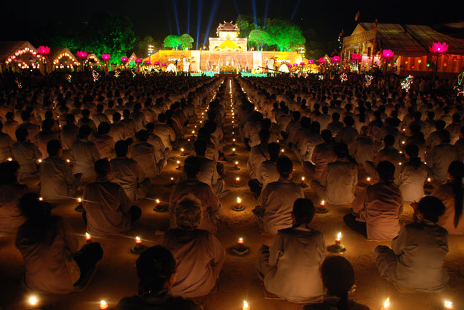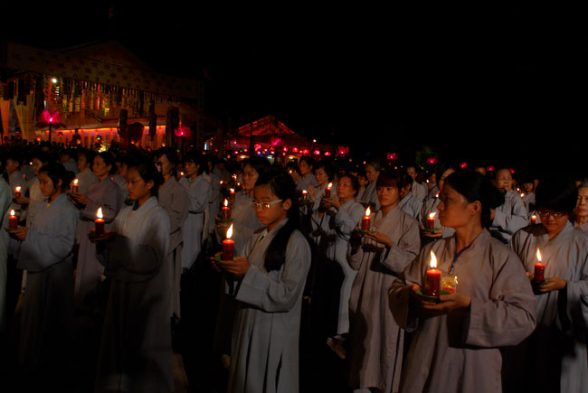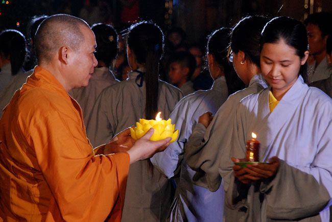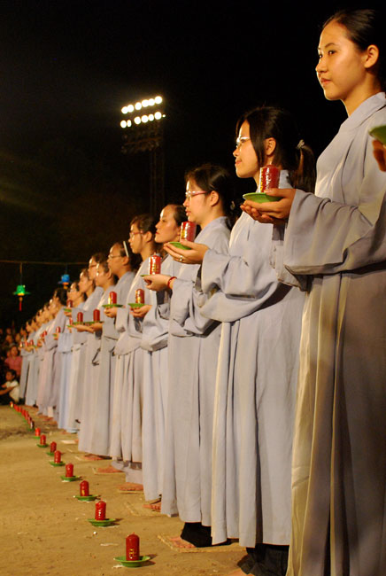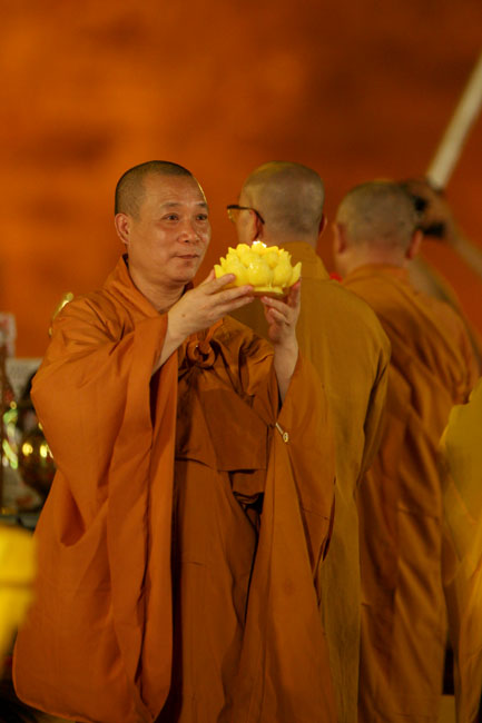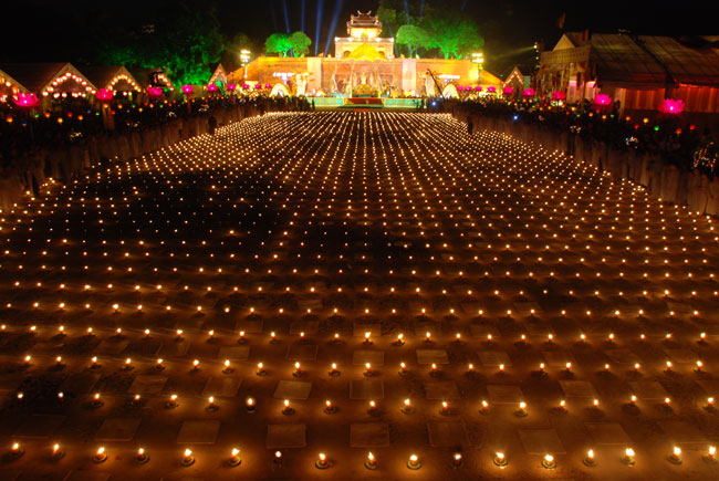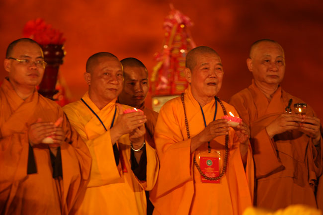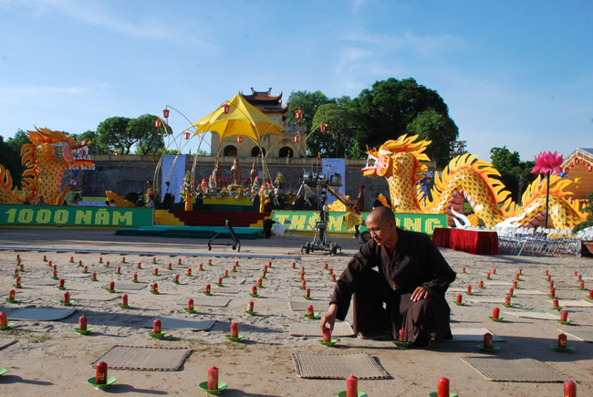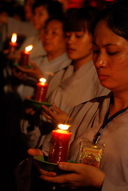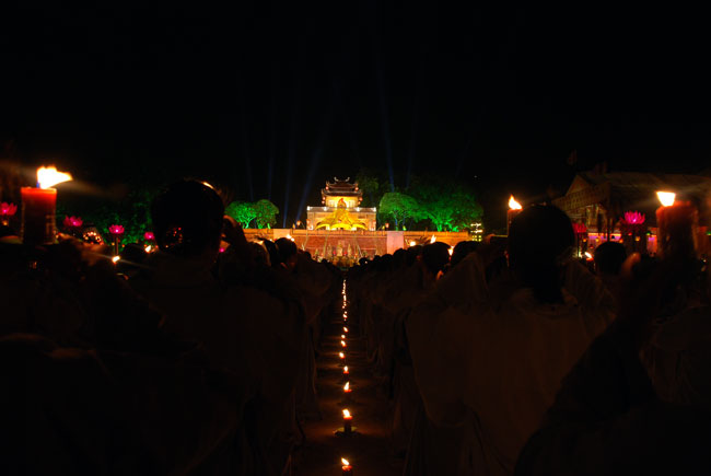 Khoảng 20 giờ 35 phút, HT. Thích Thanh Tứ mồi nến từ bàn thờ Phật, sau đó truyền đến chư tăng. TT. Thích Bảo Nghiêm tiếp tục truyền cho Phật tử. Ánh sáng lung linh của những ngọn nến tượng trưng cho ánh sáng trí tuệ đã lan tỏa cả một không gian trong khuôn viên Hoàng Thành Thăng Long.