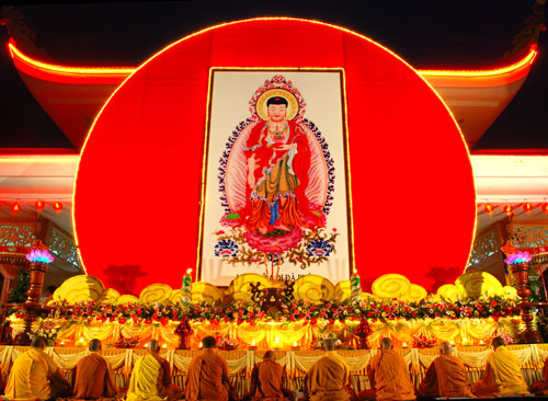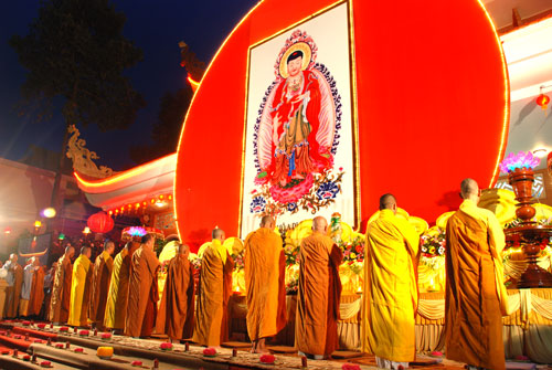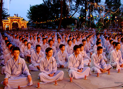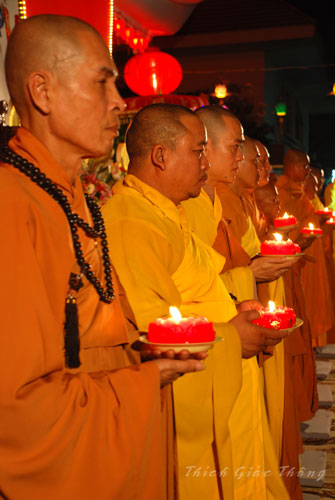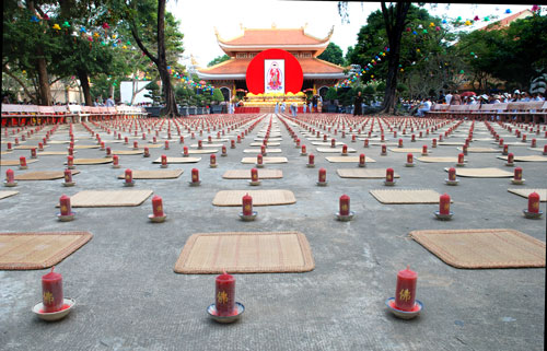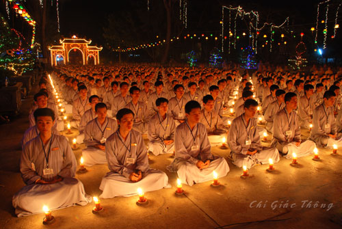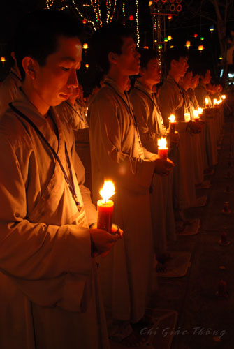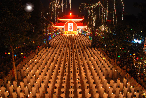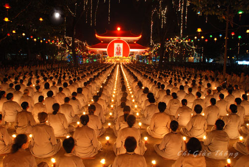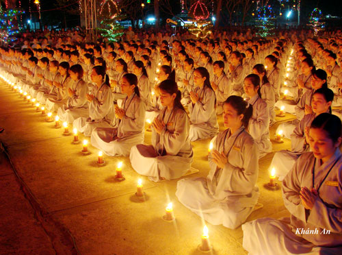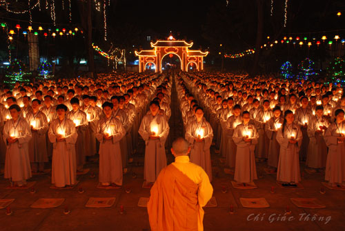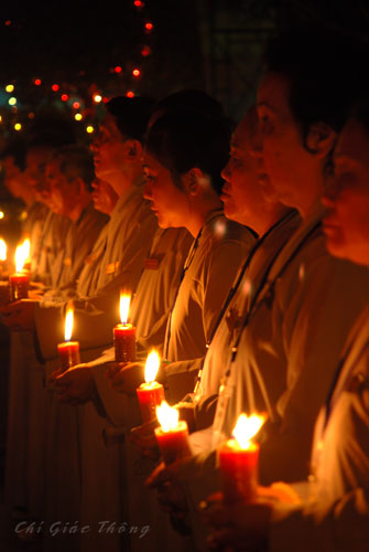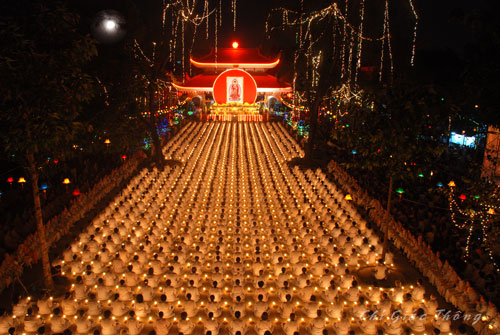 Dưới bầu trời muôn triệu vì sao lấp lánh, trong ánh sáng lung linh của ngàn ngọn nến, hòa quyện trong không khí trang nghiêm và an tịnh, hàng vạn người con Phật hướng về lễ đài, đối trước tôn ảnh uy nghiêm thanh thoát của đức Di Đà, lắng nghe Thượng tọa trụ trì tuyên đọc 48 đại nguyện và cùng đọc 12 lời phát nguyện niệm Phật.