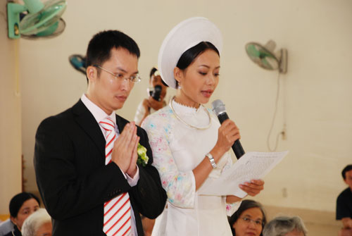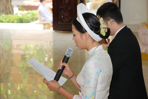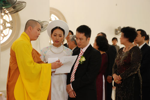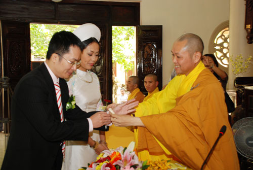 Diễn viên điện ảnh Hồng Ánh tổ chức hôn lễ tại chùa Hoằng Pháp