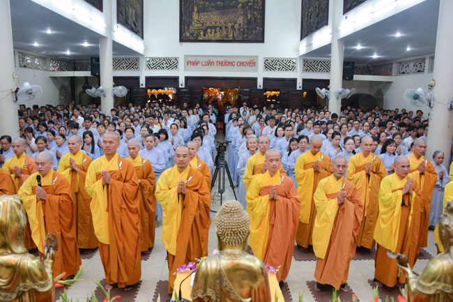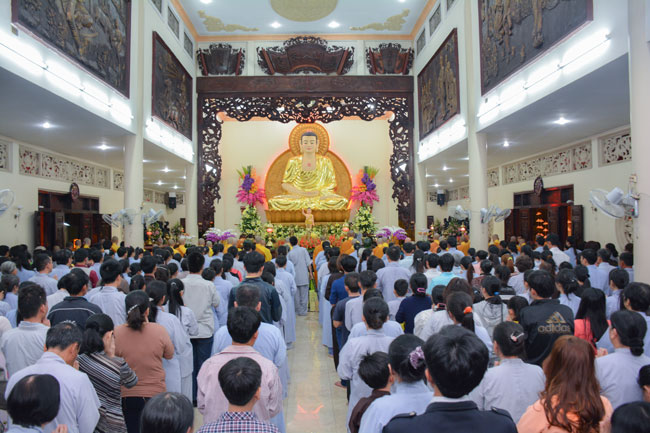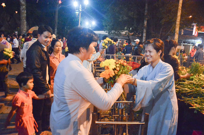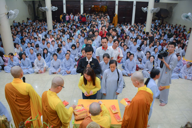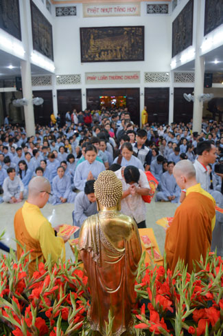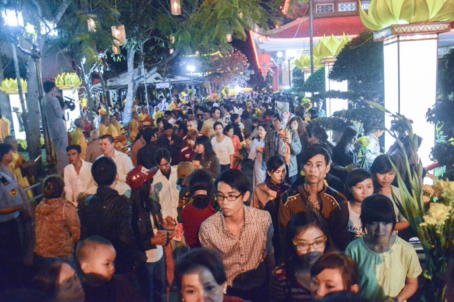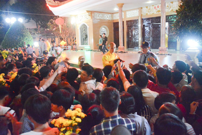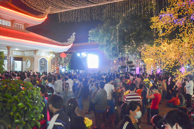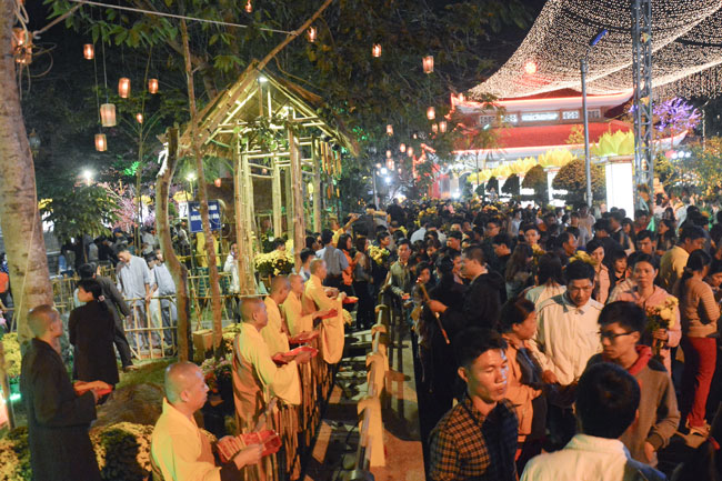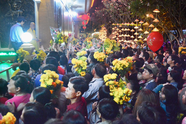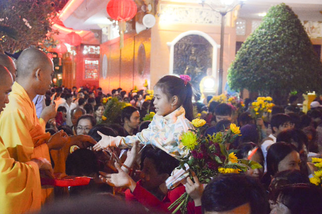 Chốn Phật môn là chốn bình yên, thanh tịnh. Với mong muốn tìm được sự bình an, gạt bỏ đi những muộn phiền, lo âu của năm cũ và cầu mong những may mắn, hạnh phúc trong năm mới, mọi người lại rủ nhau đi lễ chùa, hái lộc cầu may. Theo thông lệ hàng năm, hàng nghìn người từ khắp mọi nơi đã đổ về chùa Hoằng Pháp dự lễ giao thừa chào đón năm mới Ất Mùi – 2015. Năm cũ qua, năm mới đến, trong khoảnh khắc giao thừa thiêng liêng mọi người cùng ngồi lại bên nhau trong tình thầy trò để cùng nhau suy xét những điều đã qua và mong ước những điều tốt đẹp nhất trong một năm mới cho bản thân, gia đình và xã hội.