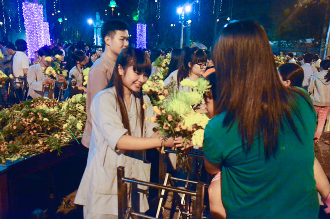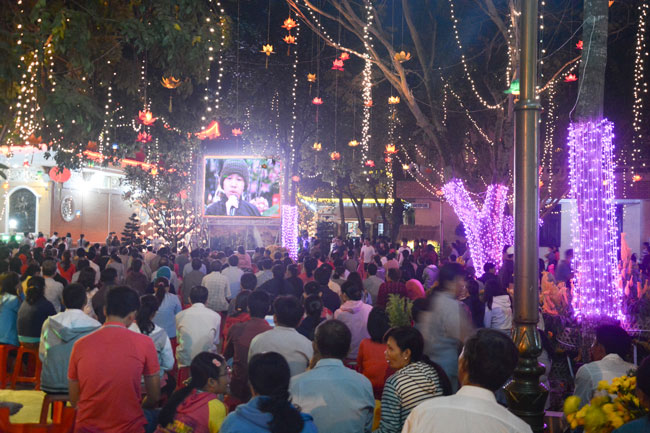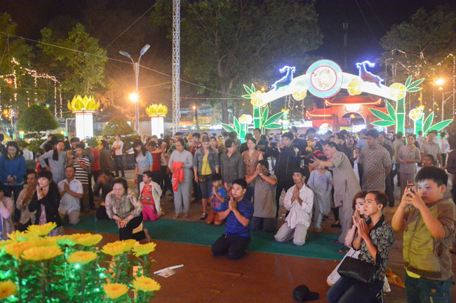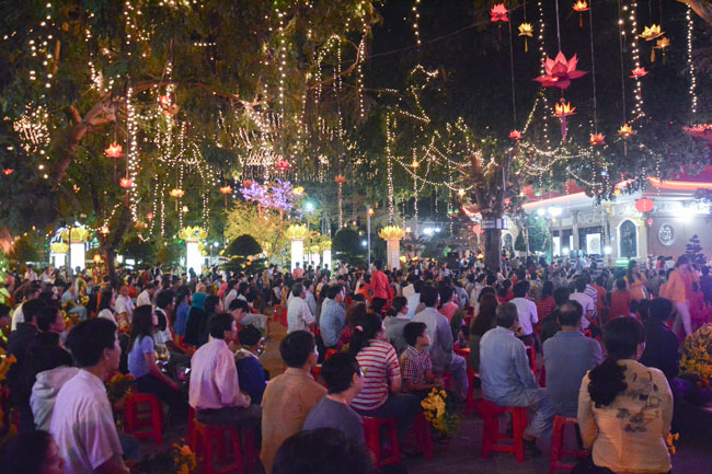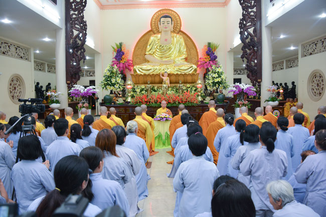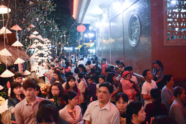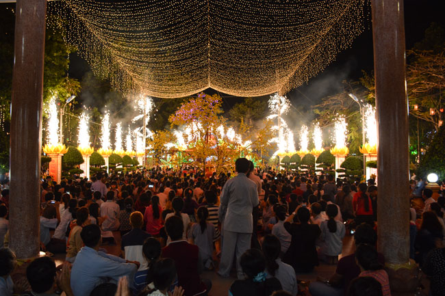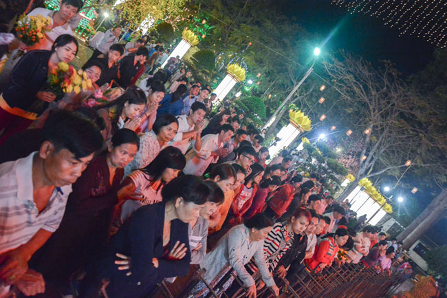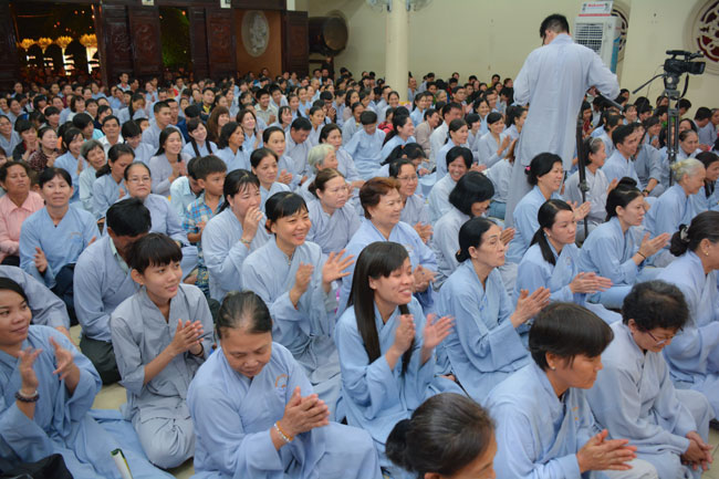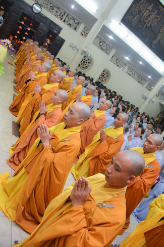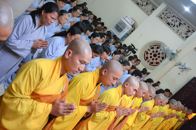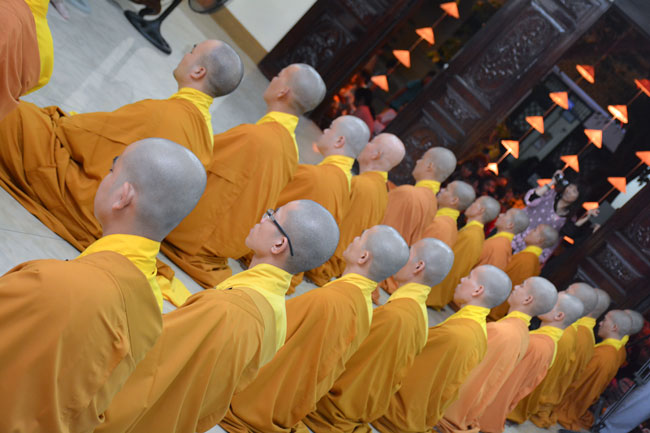 Chốn Phật môn là chốn bình yên, thanh tịnh. Với mong muốn tìm được sự bình an, gạt bỏ đi những muộn phiền, lo âu của năm cũ và cầu mong những may mắn, hạnh phúc trong năm mới, mọi người lại rủ nhau đi lễ chùa, hái lộc cầu may. Theo thông lệ hàng năm, hàng nghìn người từ khắp mọi nơi đã đổ về chùa Hoằng Pháp dự lễ giao thừa chào đón năm mới Ất Mùi – 2015. Năm cũ qua, năm mới đến, trong khoảnh khắc giao thừa thiêng liêng mọi người cùng ngồi lại bên nhau trong tình thầy trò để cùng nhau suy xét những điều đã qua và mong ước những điều tốt đẹp nhất trong một năm mới cho bản thân, gia đình và xã hội.