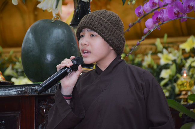 Tiếp theo đó, ngay trong đêm giao thừa, bé Bảo An và Huyền Trân đã dâng lên quý Thầy và Phật tử những lời ca tiếng hát chào đón xuân sang.
