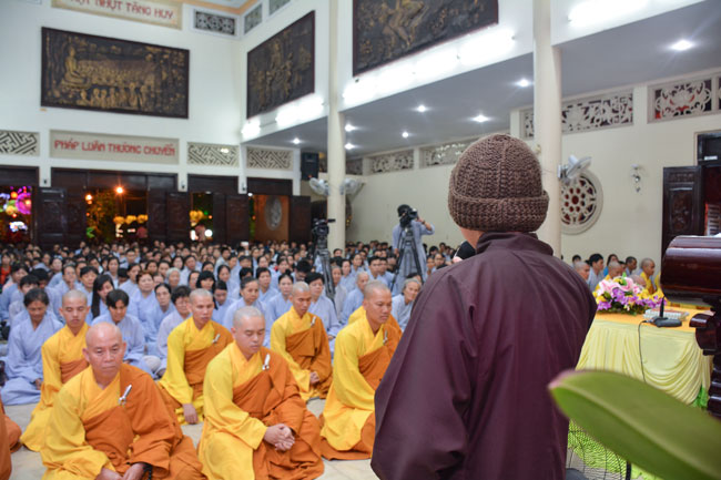 Cũng trong chương trình của lễ giao thừa, thông qua câu chuyện ngụ ngôn “Đi Tìm Thần Mặt Trời”, Thầy đã nhắn nhủ đến đại chúng về quan điểm hạnh phúc trong cuộc sống của mỗi chúng ta. Hạnh phúc là điều mà ai ai cũng mong muốn nhưng không phải ai cũng có thể đạt được điều này khi không có một sự nhận thức đúng đắn. Nhân vật anh chàng trong câu chuyện của Thầy kể đã cho đại chúng thấy hạnh phúc thật đơn giản, không phải tìm kiếm đâu xa mà nó hiện hữu ngay trong cuộc sống. Chúng ta thường hay “thả mồi bắt bóng”, hạnh phúc ngay trước mắt, chúng ta không thấy mà lại cứ đi tìm. Con người chúng ta hằng ngày có biết bao điều hạnh phúc đến với bản thân lại không hay không biết. Hạnh phúc khi có đầy đủ lục căn, hạnh phúc khi biết và tu tập trong giáo pháp của đức Như Lai. Đó là những điều hạnh phúc nhất mà chúng ta cần phải trân trọng để luôn có được sự thăng hoa hạnh phúc trong cuộc sống hiện tại cũng như trong tương lai.