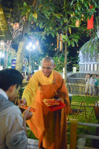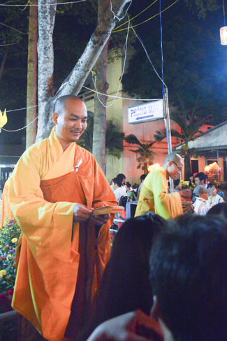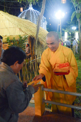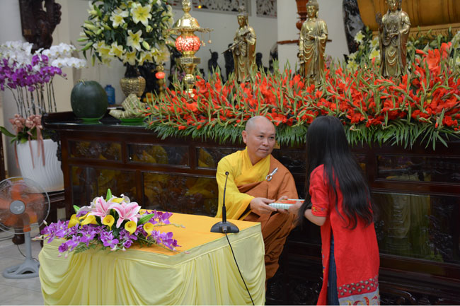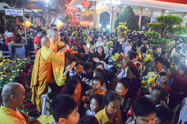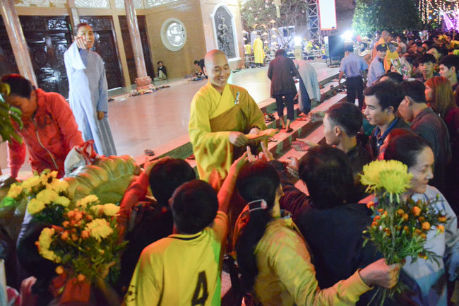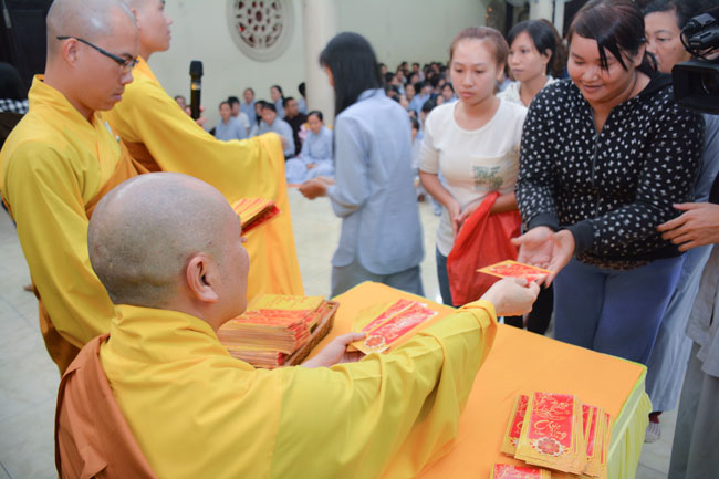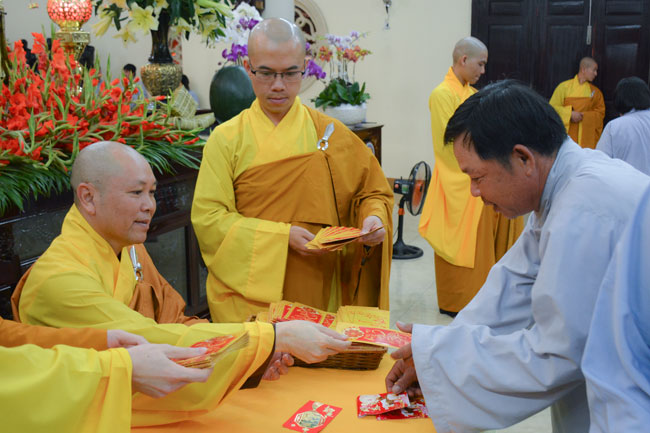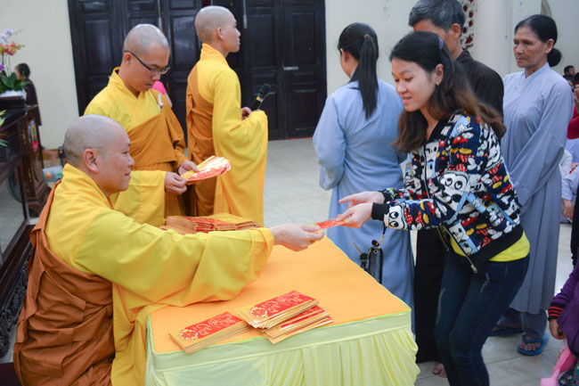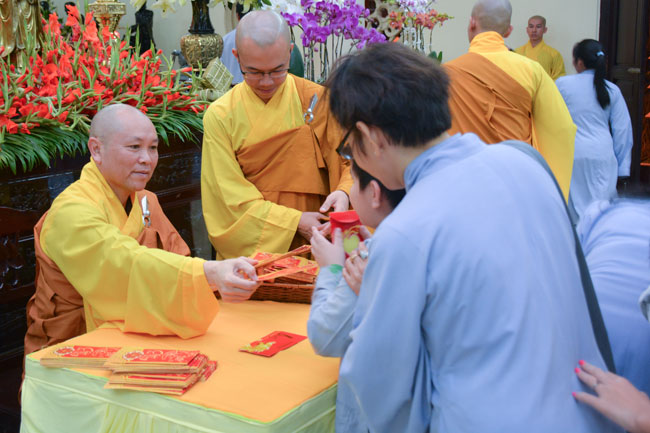 Trong niềm hỷ lạc vô biên của những giây phút đầu năm mới, tất cả quý thiện nam tín nữ Phật tử đã tuần tự nhận lộc lì xì đầu năm của Thượng tọa trụ trì và quý thầy trong bổn tự.