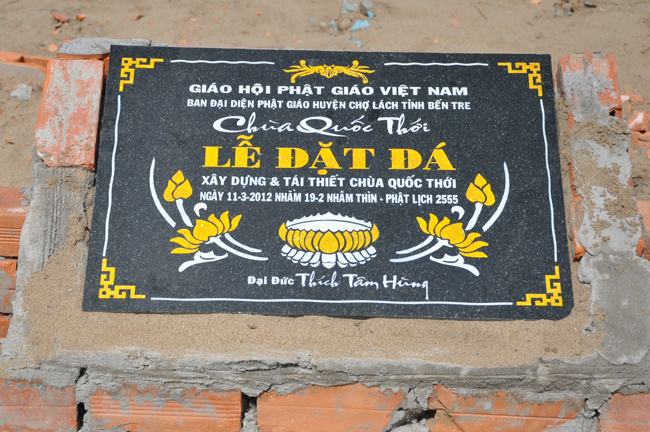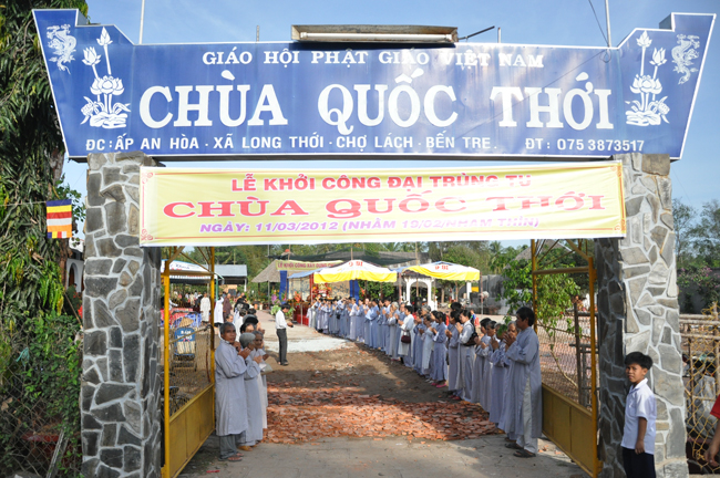 Đáp lại lời cung thỉnh của Đại đức Thích Tâm Hùng trụ trì chùa Quốc Thới, thuộc xã An Long, huyện Chợ Lách, Tỉnh Bến Tre, sáng ngày 11/03/2012 (nhằm ngày 19/02/Nhâm Thìn) Thượng tọa Thích Chân Tính đã quang lâm chứng minh lễ đặt đá trùng tu chánh điện