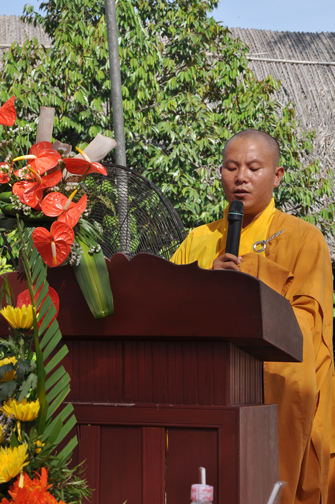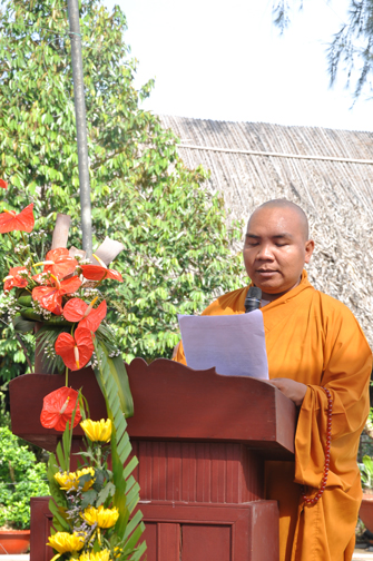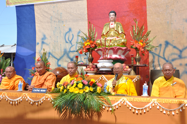 Trong buổi lễ, Thượng tọa Thích Chân Tính có lời tán thán cũng như khích lệ việc làm thiết thực này của Đại đức trụ trì. Thượng tọa còn nêu ra giá trị của ngôi chùa trong đời sống tâm linh của nhân dân Phật tử và mái chùa như là một biểu tượng linh thiêng của hồn nước và hồn người dân Việt. Cuối cùng, Thượng tọa cũng có lời sách tấn Đại đức trụ trì trong việc tu tập cũng như trách vụ hoằng pháp lợi sinh của người xuất gia. Đồng thời rất mong được sự ủng hộ của Phật tử gần xa trong nước và nước ngoài để việc trùng tu ngôi chánh điện sớm hoàn thành